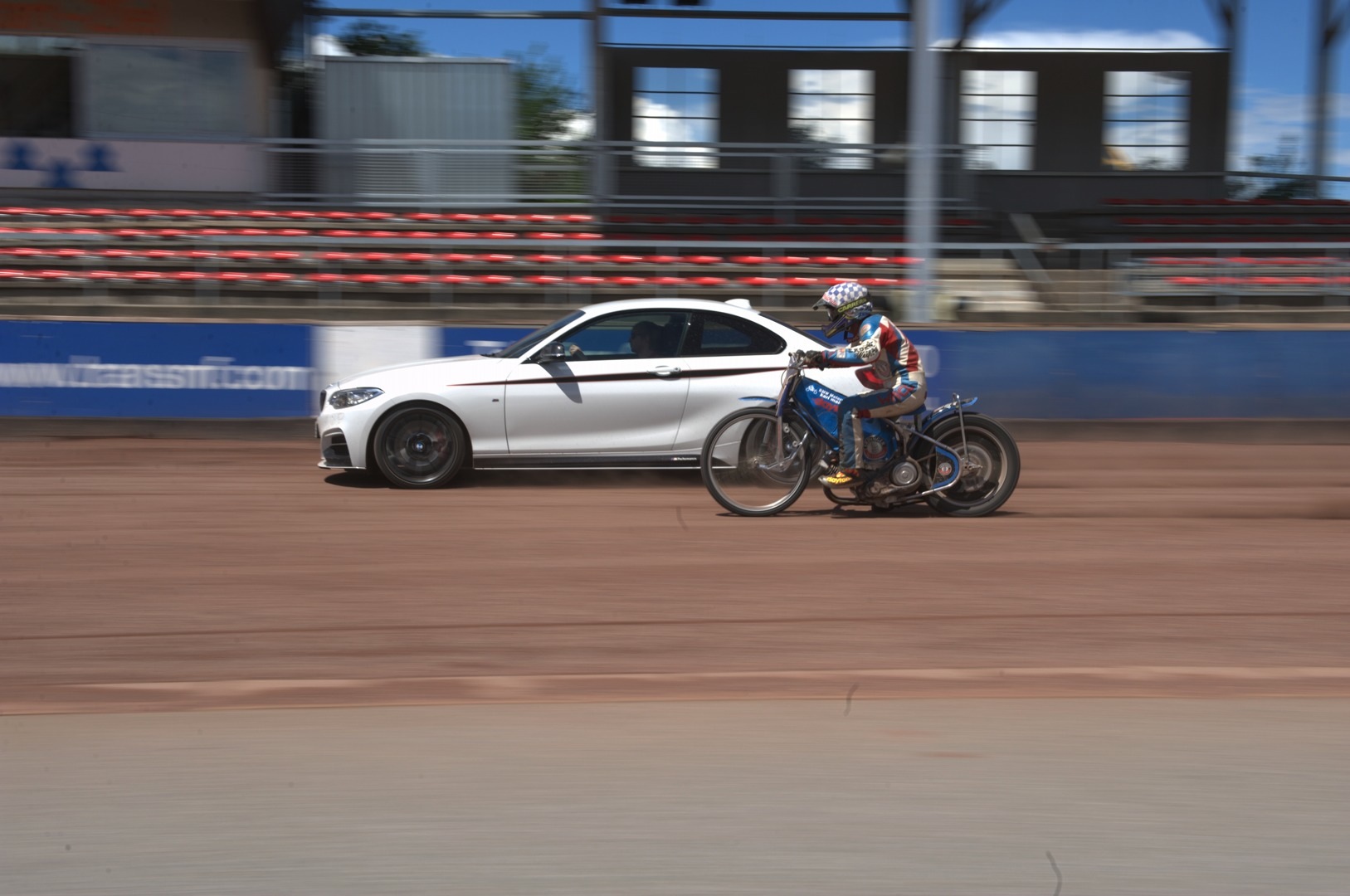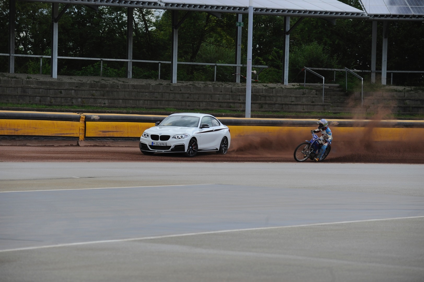 Despite the vastly different profiles of their machines, both driver and rider succeeded in fulfilling a common goal: five hours of “sheer drifting pleasure” on the tightest of tracks. Its first ever meeting with the speedway bike gave the BMW M235i M Performance the chance to demonstrate its dynamic performance capability for the first time on dirt rather than asphalt.