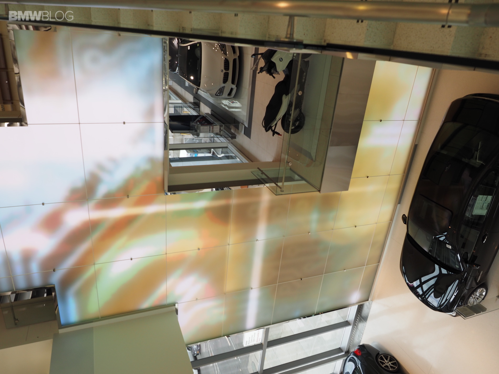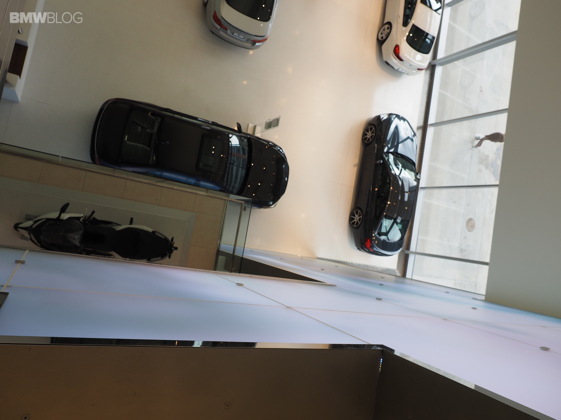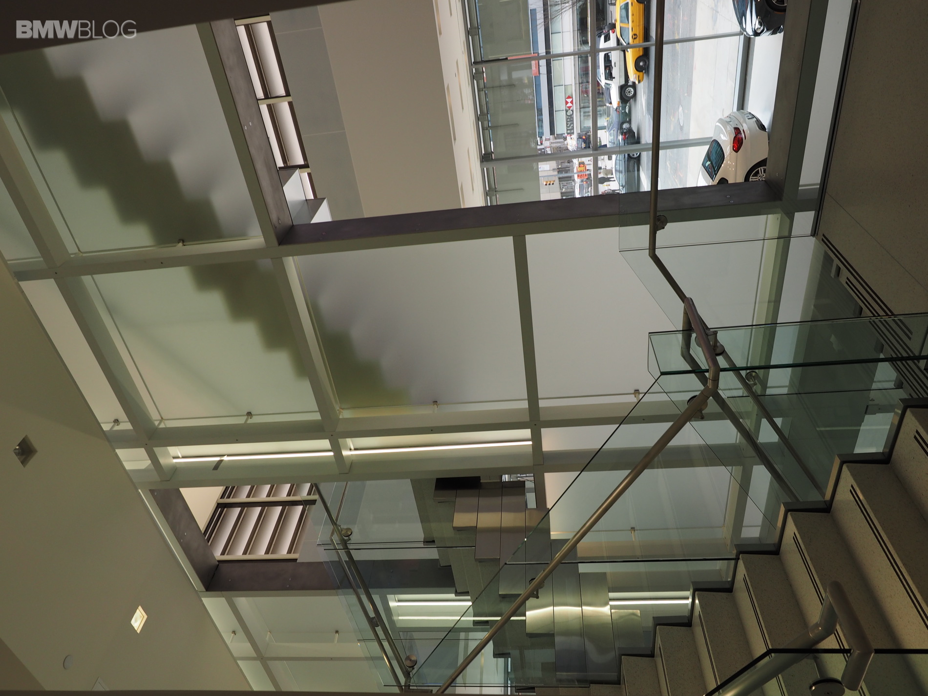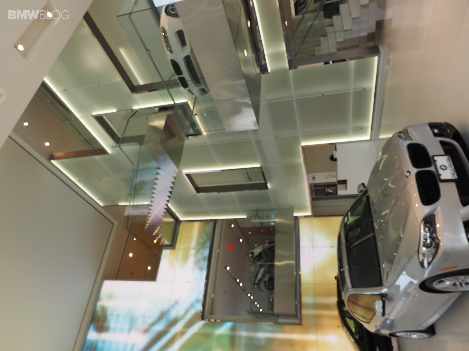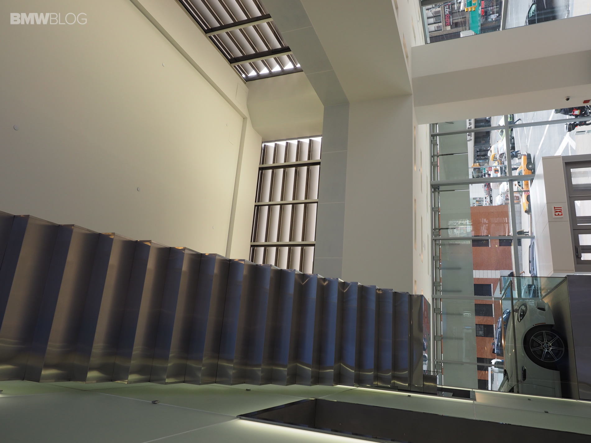 A unique feature at BMW of Manhattan is their huge three story entrance hall with LED display wall which is a rolling, changing display of BMW technology and automobiles. BMW can use this are to hold new car unveils to customers and it’s really a stunning design feature of the dealership. Exposed stair cases and overlooks decorated with new cars and a motorcycle give a multitude of gorgeous views that were very difficult to capture well with the camera. If you are in the area, it is definitely worth a look to see the new direction of BMW dealerships in the coming years.