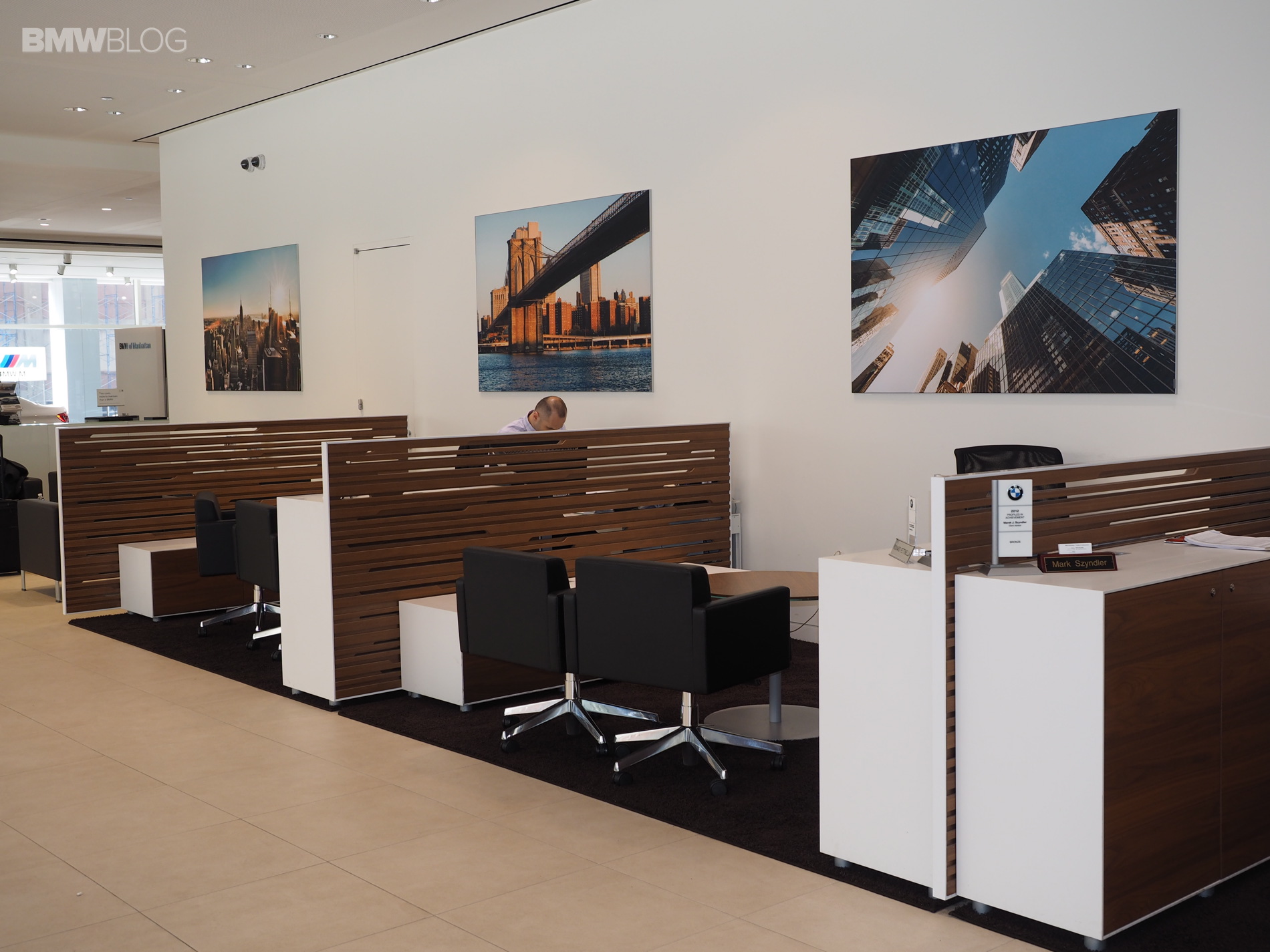 The overall look and feel of BMW of Manhattan reminds me a lot of BMW’s outstanding dealership in Munich, BMW Niederlassung München Frankfurter Ring with its use of natural woods and open feel. The new Manhattan dealership is bright and open with a lot of natural wood in use. Gone from BMW dealership playbook is the silver and white of years past.