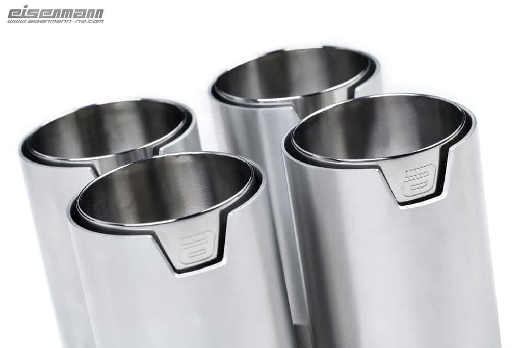 The new “Signature” tip combines what was great about BMW M’s design with the classic Eisenmann LeMans style to create something that is both at home on BMW’s new M car and also an homage to Eisenmann’s own classic tip designs. Eisenmann’s new “Signature” tips are specifically designed to emulate the style of the BMW M tips, to allow their clients to remain within the M realm of design and appearance, while simultaneously having something very unique- the added “LeMans style” inner tip is an Eisenmann hallmark, and has been unique to Eisenmann for over a decade.