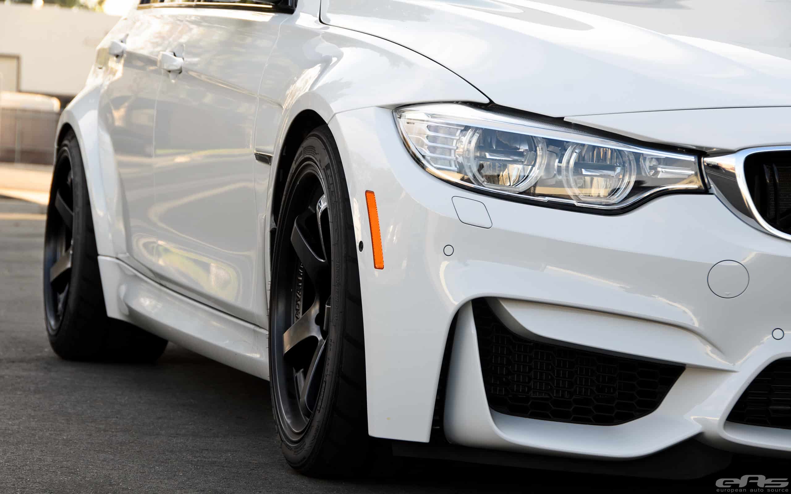 So, you get your Alpine White BMW F80 M3 and you decide that something’s off a bit. That’s when you get in touch with European Auto Source and arrange a selection of aftermarket goodies to be added to it. On this F80 M3, the first thing that needs to be added are a set of aftermarket wheels, all combined with a lowering kit.