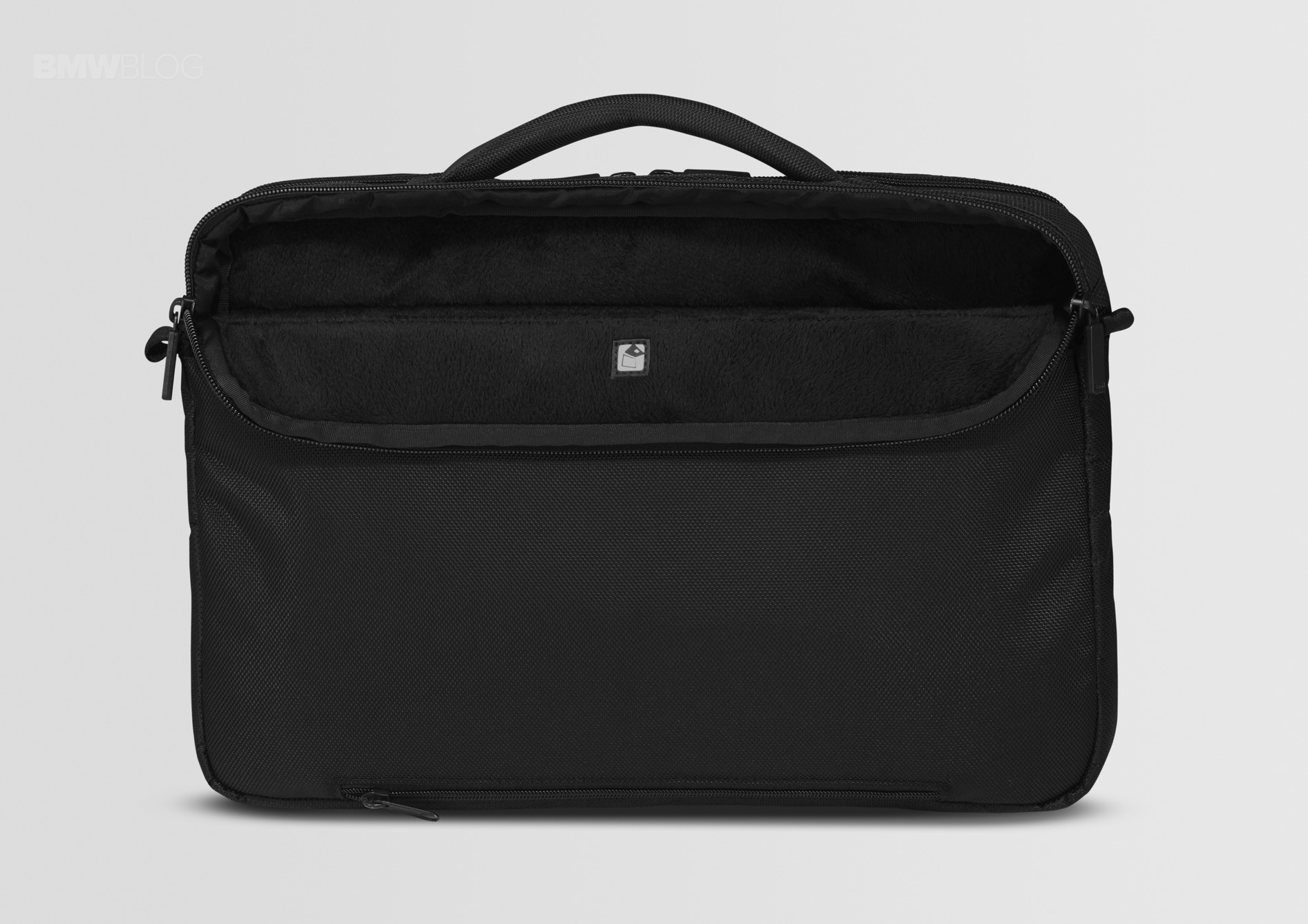 Sometimes every second counts – like when checking in at the airport. That’s where a handle and an extendable telescopic bar come in useful. The black BMW Modern Boardcase is ideal for flights and short getaways. Two easily accessible outer compartments provide space for everything you want to have at hand. There is also plenty of storage space on the inside. The case is suitable for carry-on and weighs just 3.2 kg. Its big brother, the BMW Modern Trolley, 22″, offers additional comfort with its easy-glide rubber wheels, plus extra-strong handles. It weighs in at 3.7 kg. The BMW Modern Messenger Bag with shoulder strap and padded handle is ultralight (500 g) and flexible. Two large, padded main compartments are suitable for laptops up to 15 inches. The BMW Modern Messenger Bag also fits perfectly on top of a trolley. The BMW Modern Sports Bag offers plenty of space thanks to its roomy main compartment. And that’s not all. Its design features a wide range of practical extras – these include an additional key pocket, plus a flexible shoe compartment with ventilation mesh. It also features a wide side pocket with special compartments. A true all-rounder that is tailored to the needs of active people. All that and it weighs just 1.2 kg.