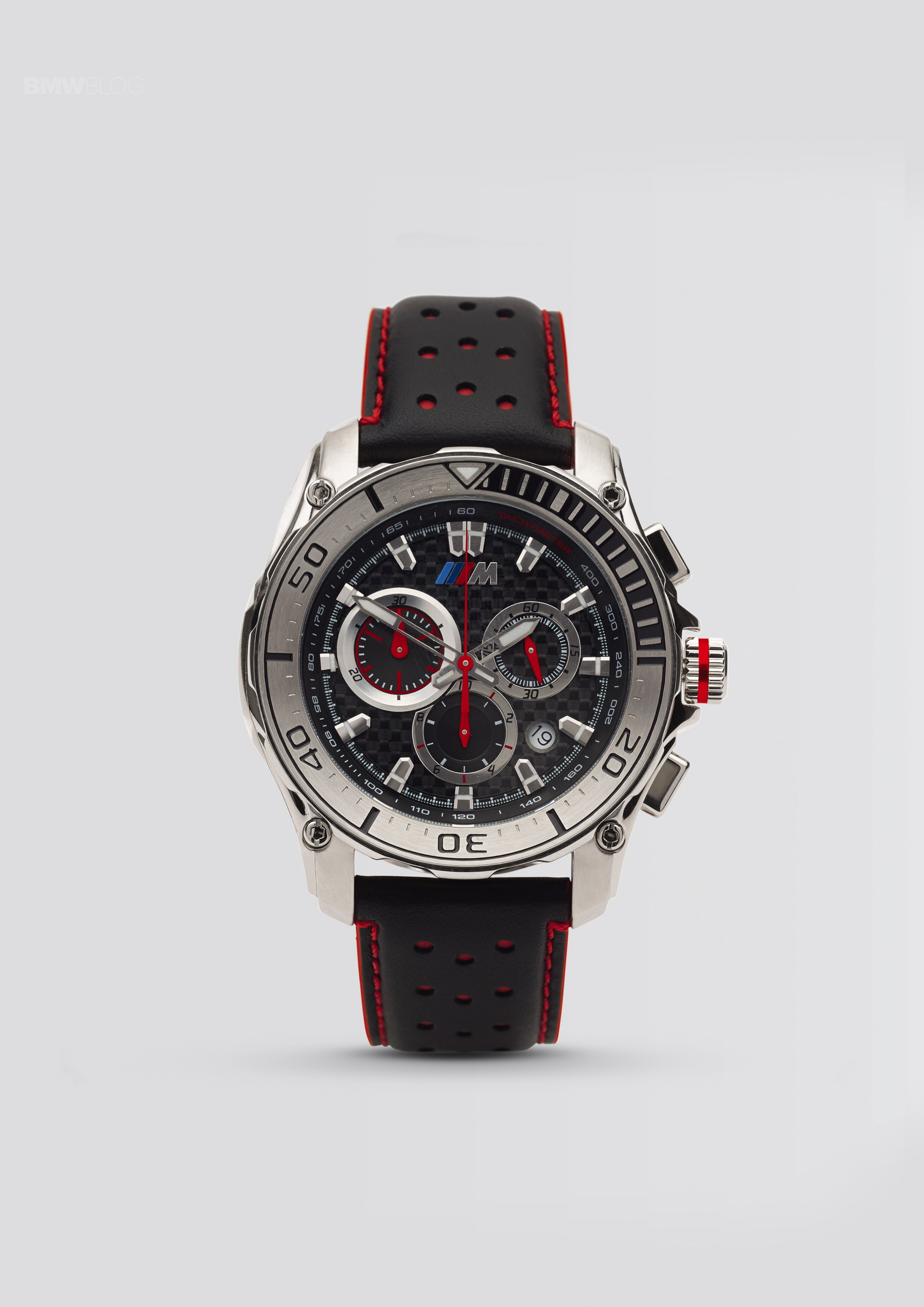 Striking red or matt black. Those are the two sides to the new BMW M reversible down jacket for ladies, which can turn from subtle to fiery in the blink of an eye. The light jacket is perfect in any weather thanks to its tapered cut and wind and water-resistant outer fabric. The practical reversible jacket has a male counterpart with the BMW “2-in-1” jacket. This dark all-rounder features a snazzy zip-off down body warmer in rich M red with functional details. The crinkle-free outer jacket is made from shape memory fabric, while its precise quilting ensures a great fit and minimal weight. The wind-proof button strips and large fleeced flap pockets ensure you stay comfortable whatever the weather. The BMW M Carbon Chrono will demonstrate its qualities when put to the test. This striking brushed stainless steel wrist watch is water-resistant up to 100 metres and features a carbon watch face. A bright red second hand displays the time behind the scratch-resistant mineral glass cover. This is perfectly complemented by the perforated real-leather wrist strap with red trim.