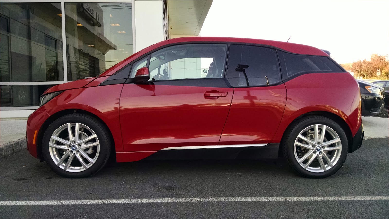 BMW spent a lot of energy designing wheels that were good looking, lightweight and were aerodynamic. These Rial wheels appear not to have taken any of that into consideration when they were designed. The large openings between the spokes are begging for increased wind resistance, and to make matters worse, they aren’t even flush with the rims, the center of the wheels actually bows outward and will clearly increase drag. I’m really not worried about this though because safety, and being able to negotiate the snow covered roads of Northern New Jersey are my primary concerns. Plus, I have the range extender so if my efficiency is reduced by 6 or 7 miles per charge, I’ll still be able to get to wherever I need to go without worrying about running out of juice. Bring it on!