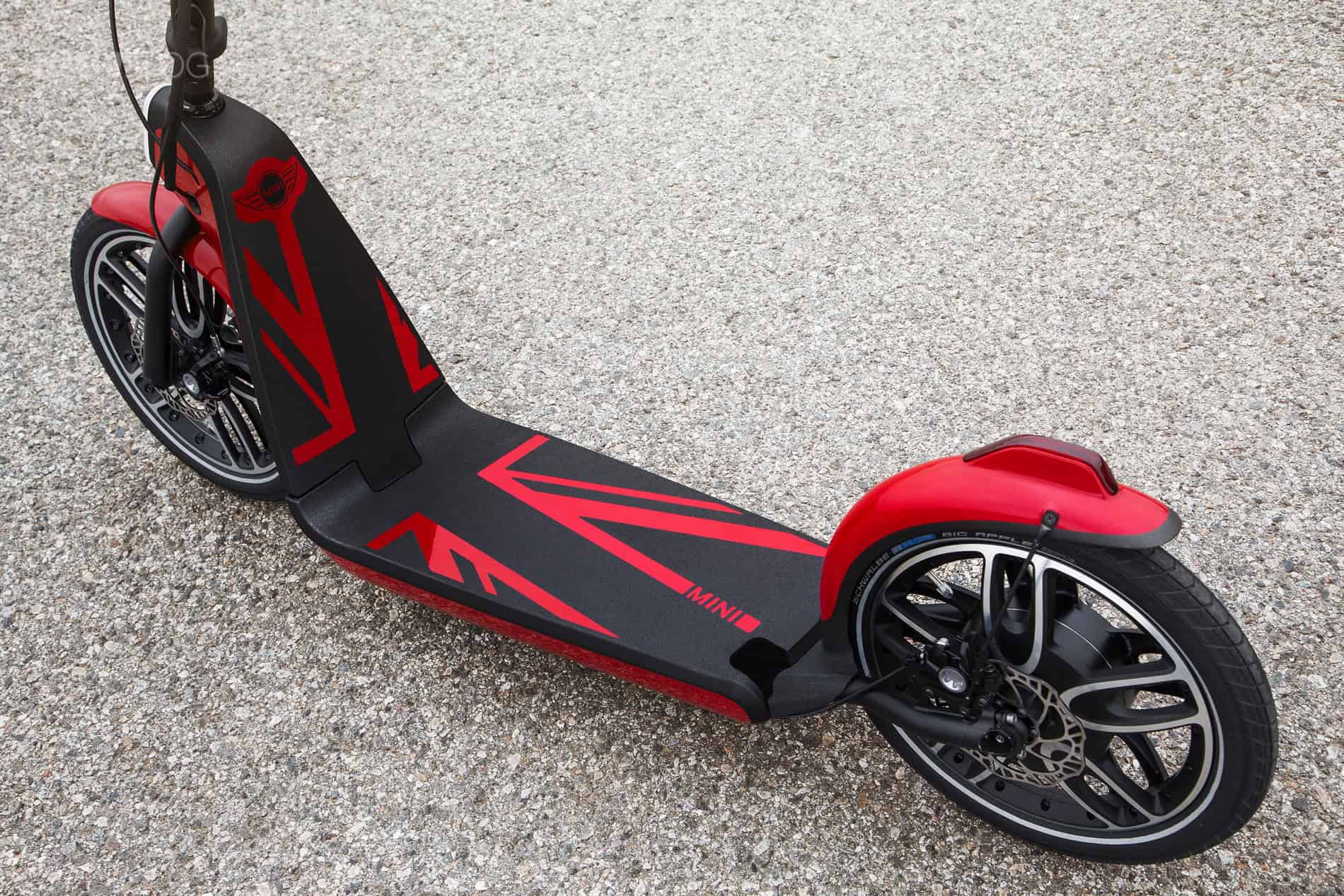 • MINI Citysurfer Concept has safe, versatile and agile riding properties, large wheels with pneumatic tyres also make it suitable for bumpy paths, low foot board, stable frame and height-adjustable handlebars; three brake systems which operate independently of each other; recuperation brake via electric drive generator function, hydraulic disc brakes at the front and rear wheel; excellent deceleration and agile handling since there are no limits to the rider in shifting the centre of gravity; good all-round view and visibility to other road users due to upright riding position; folding concept with safety function for correct engagement when unfolding.