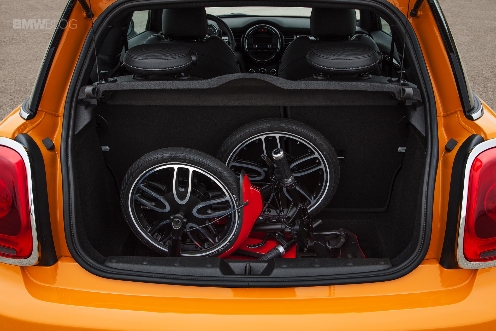 • Wide range of potential uses due to compact structure, foldability and low weight of just 18 kilograms (40 lbs); MINI Citysurfer Concept suitable both for use on its own and in combination with other means of transportation; easy to transport, for example in the luggage compartment of the new MINI 3 door or on buses and trains; minimum traffic space due to single-track concept, enabling spontaneous and convenient mobility even in those sections of an urban area not accessible to motorised vehicles; therefore the ideal mobility supplement for covering the distance between car park, rail or bus station and final destination.