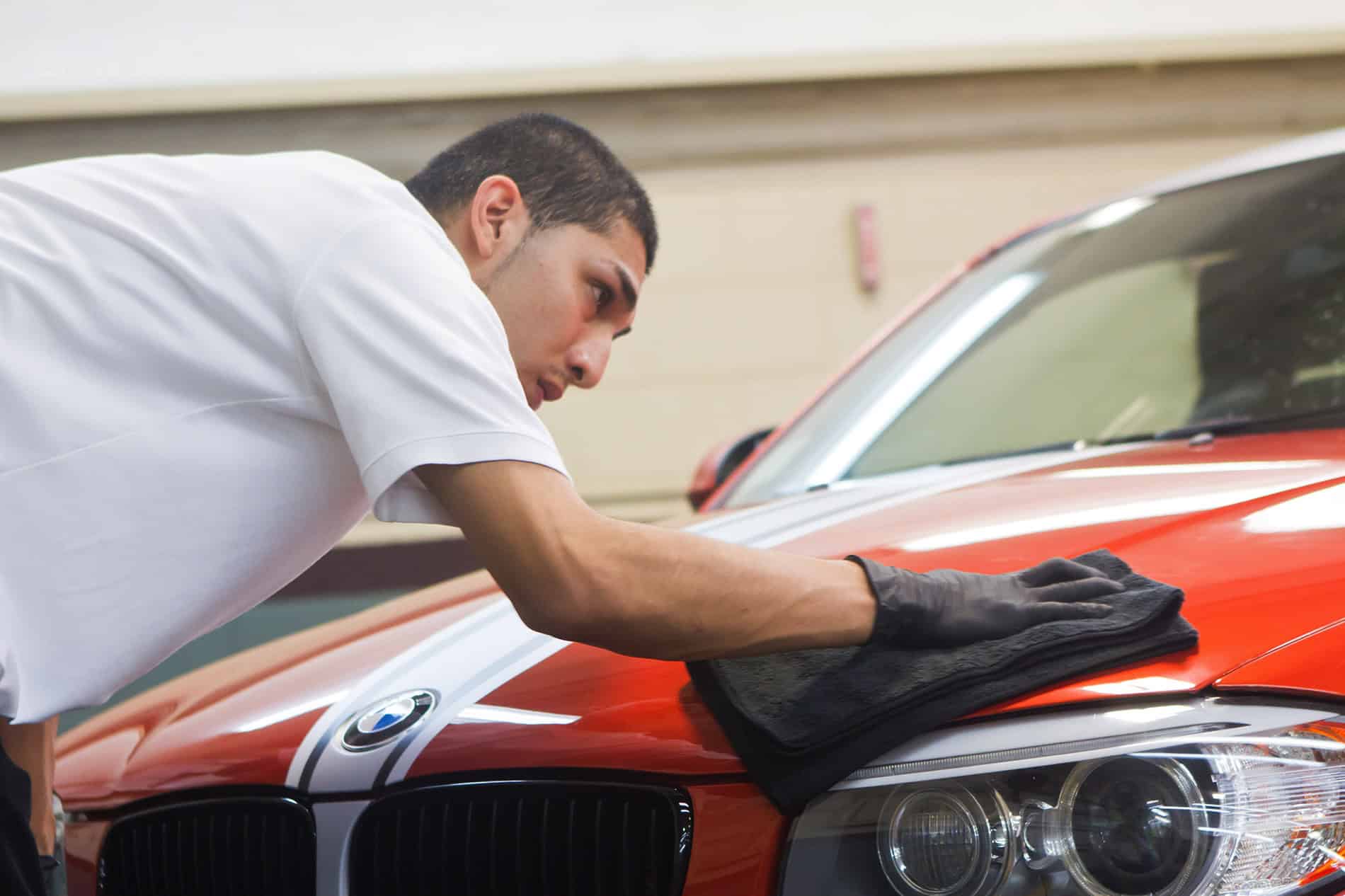 It’s hard to get a good look at the quality of the paint when the car’s dirty. So after washing the exterior it’s important to inspect the paint. This will allow you to determine what kind of detail you need. What we are looking for is the amount and depth of swirls and scratches, stains, and any other imperfections. At the same time we also look at the vinyl to look for chips and stains.