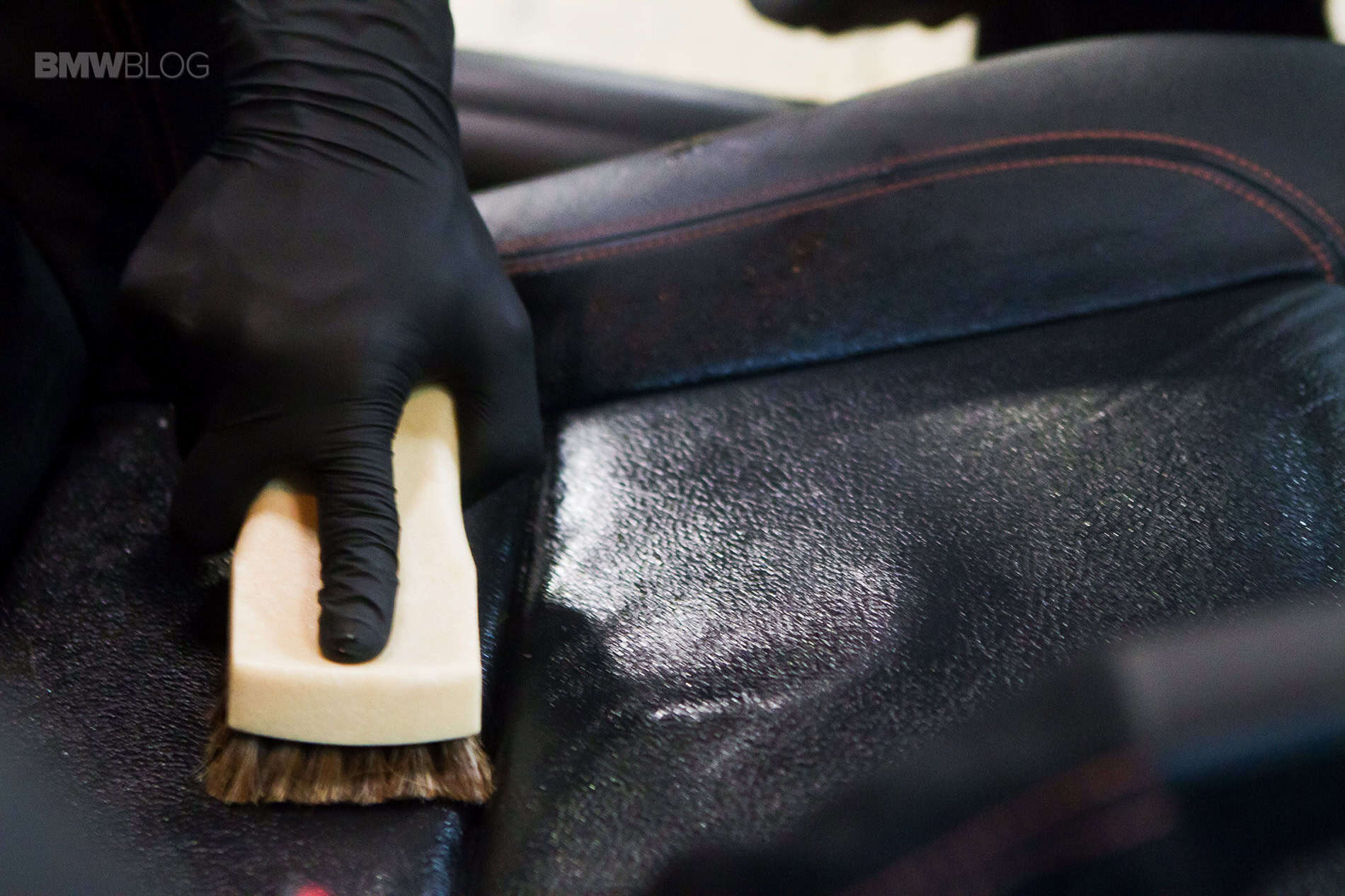 Conditioning interior surfaces of the car is a vital part of detailing. For the 1M, we needed to condition the leather and the plastic. While the plastic dash is subject to UV damage and fading, the leather is prone to drying out and cracking. Leather, like your skin, needs to be moisturized and given nutrients to remain looking new.