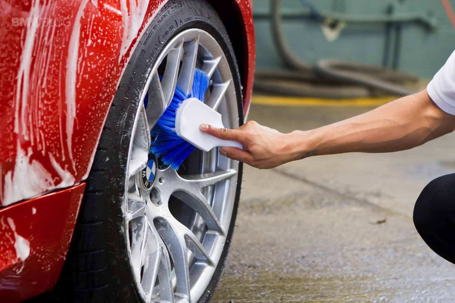 When beginning, use the wash pads starting at the top of the car and working down. This will ensure that the dirt from the dirtiest part of the car (the lower third) is not being dragged up the rest of the car. For any kind of dirty wheels, it’ll be helpful to spray the wheels with a wheel cleanser to break down any tough contaminants. For particularly soiled surfaces, the use of brushes can be helpful to lift the contaminants off the surface. Be particular about using dedicated brushes for the body of the car (usually used on the lower third), the wheels, and then the tires.