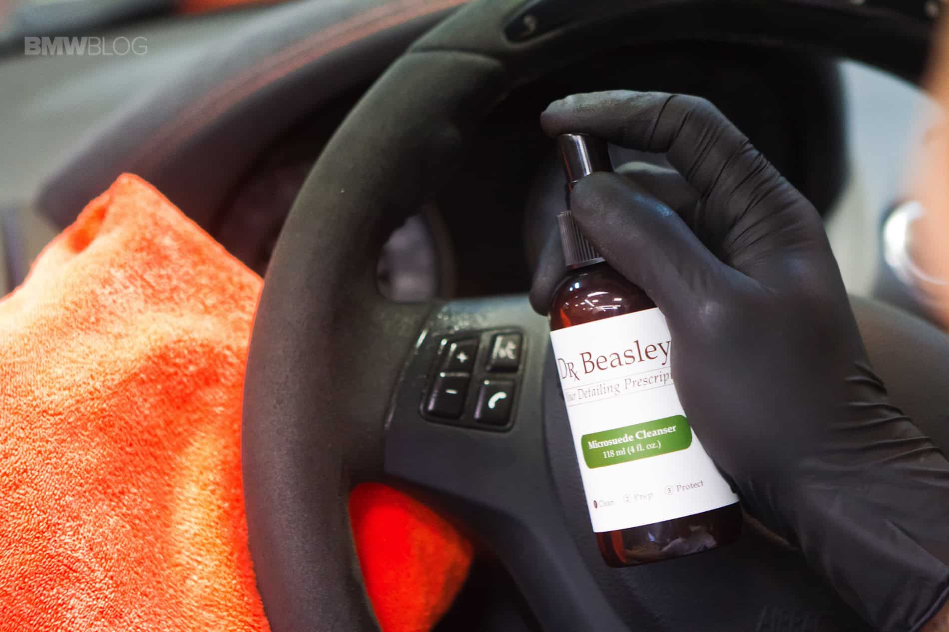For the BMW M1, we had leather, carpet, plastic, and Alcantara. Because this car wasn’t particularly soiled anywhere, all we had to do was take an organic cleaner and lightly go over each surface. This will remove things like body oils, dirt, and other contaminants that naturally occur.