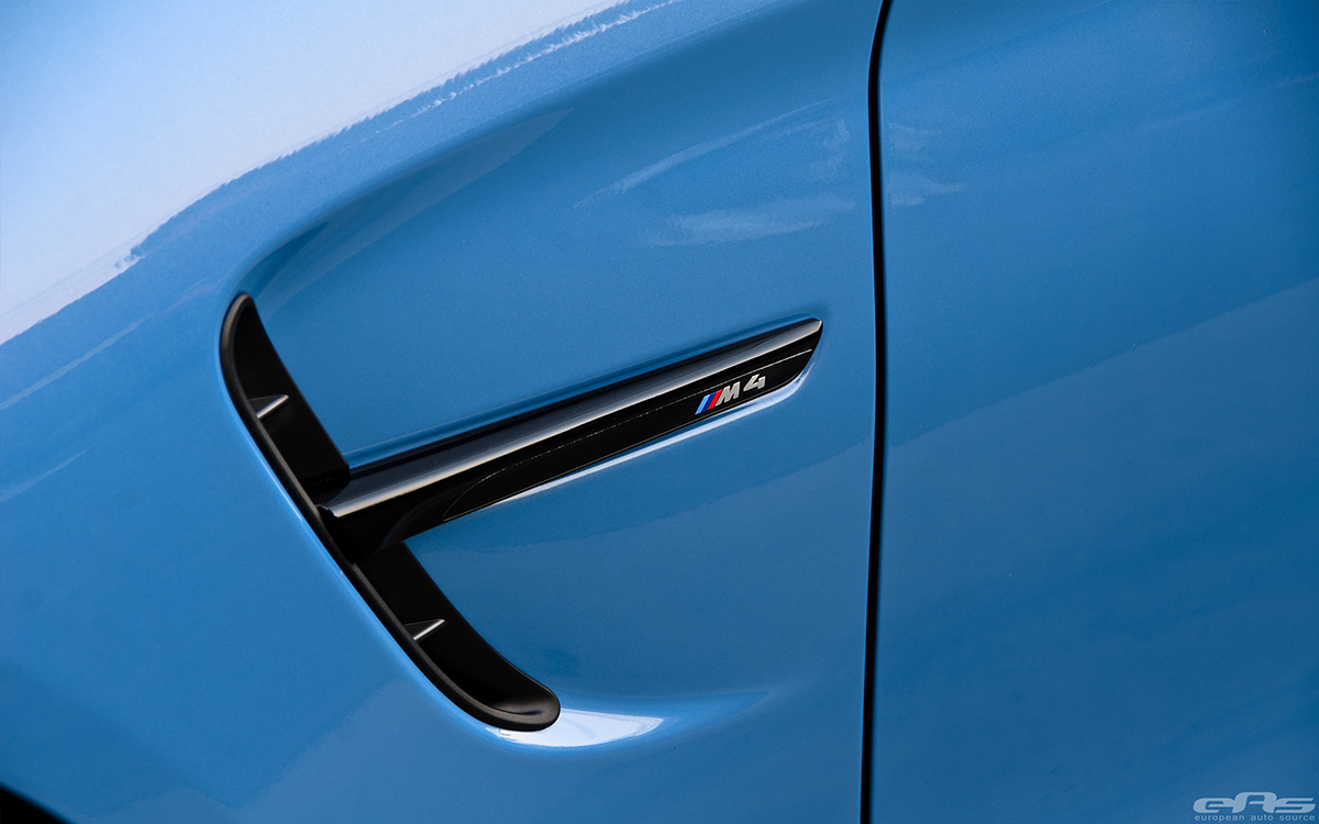 The BMW F82 M4 seen here received the BMW M Performance ABS Side Blade Attachments, BMW M Performance Carbon Fiber Front Splitters with ABS Lower Splitter, a BMW M Performance Gloss Black Kidney Grilles, then the BMW M Performance Gloss Black Side Markers and additionally, an EAS Personalization Coding as requested by the owner himself.