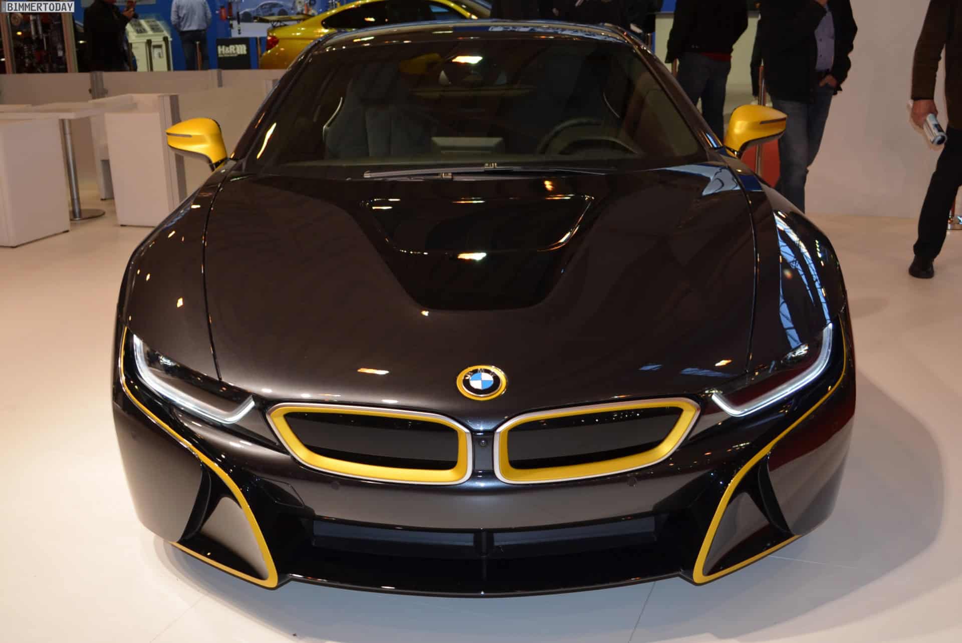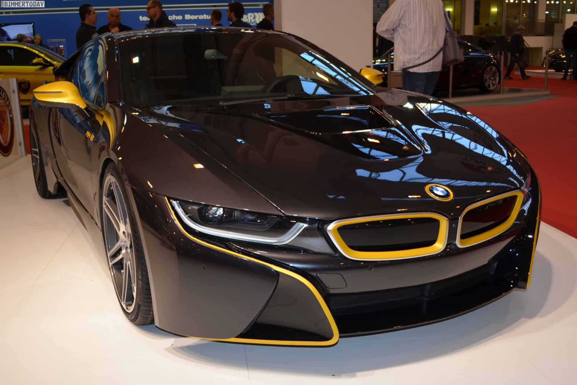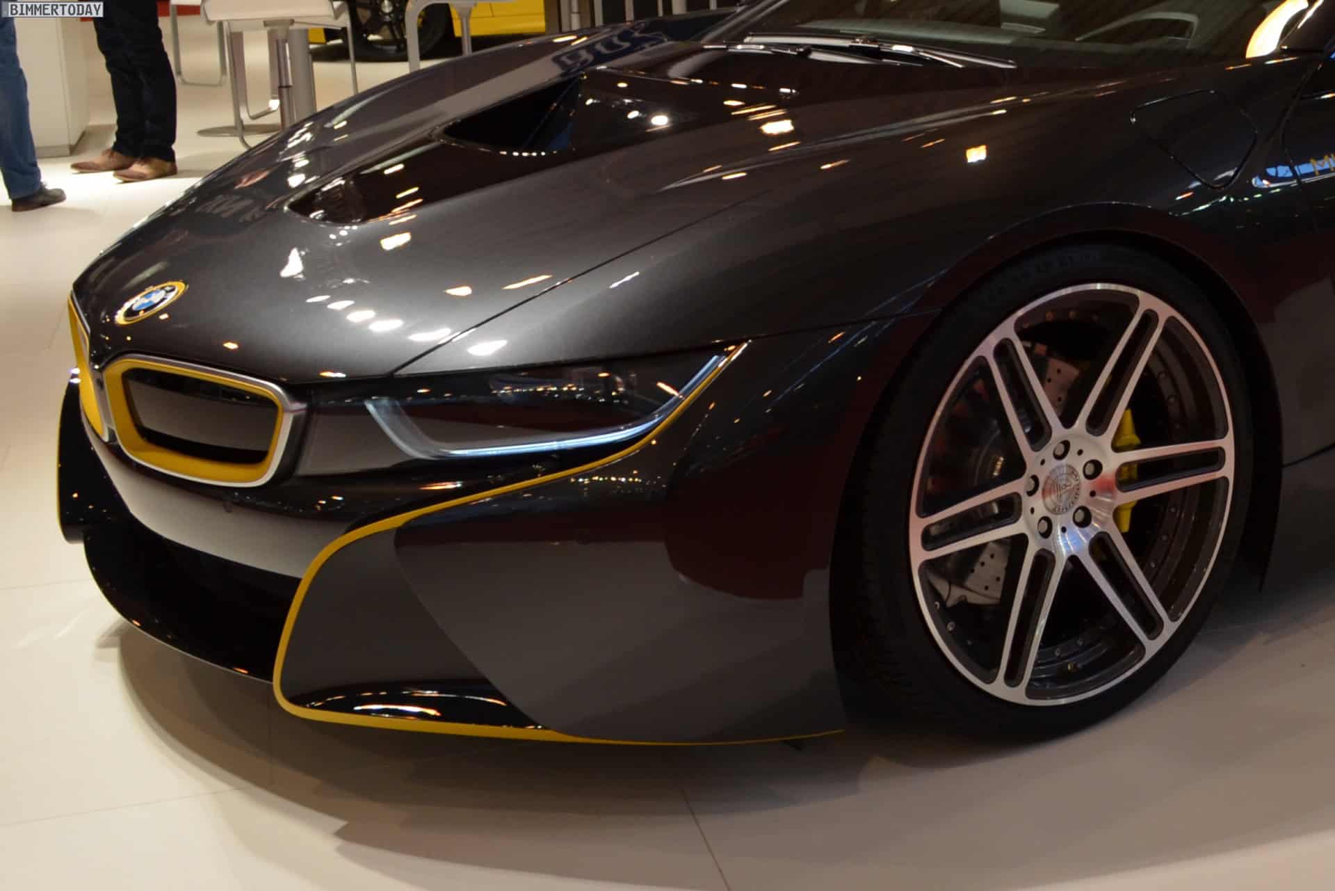 One of the undisputed stars of the 2014 Essen Motor Show 2014 is without doubt the BMW i8 by tuning shop Manhart. The plug-in hybrid sports car comes to the popular tuning show with a new paint job. The matte yellow accents are paired with the Sophisto Grey factory color.