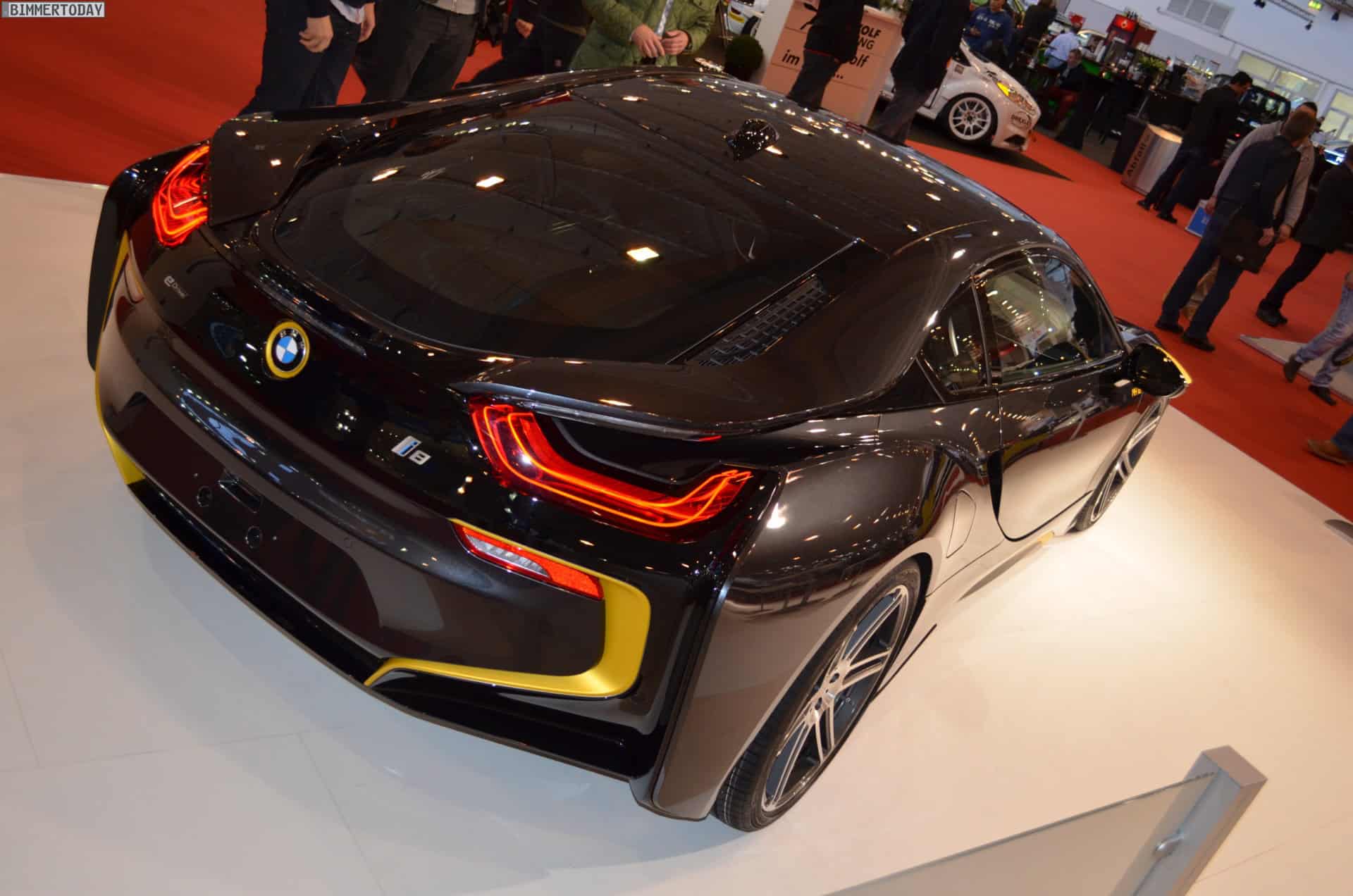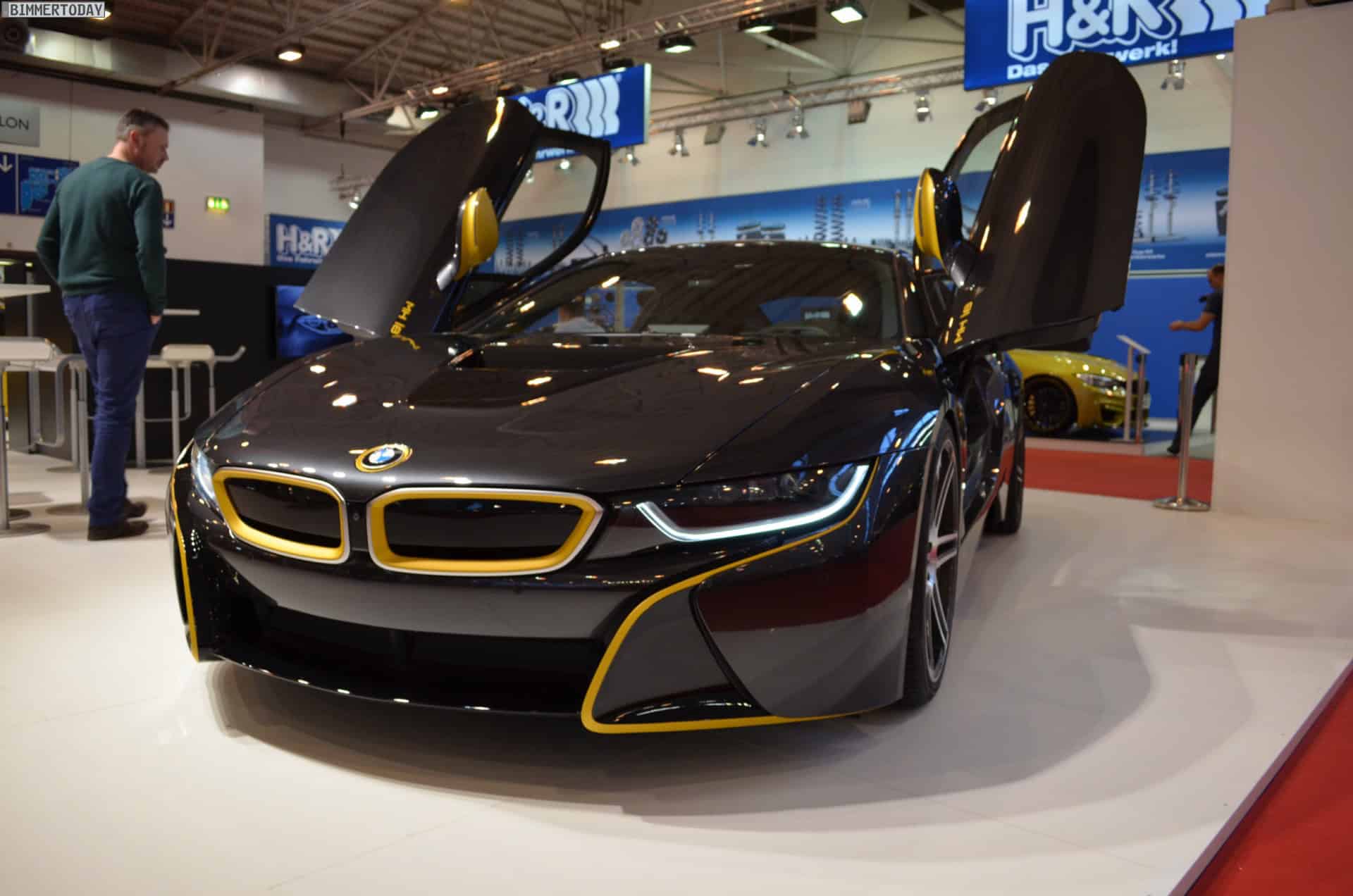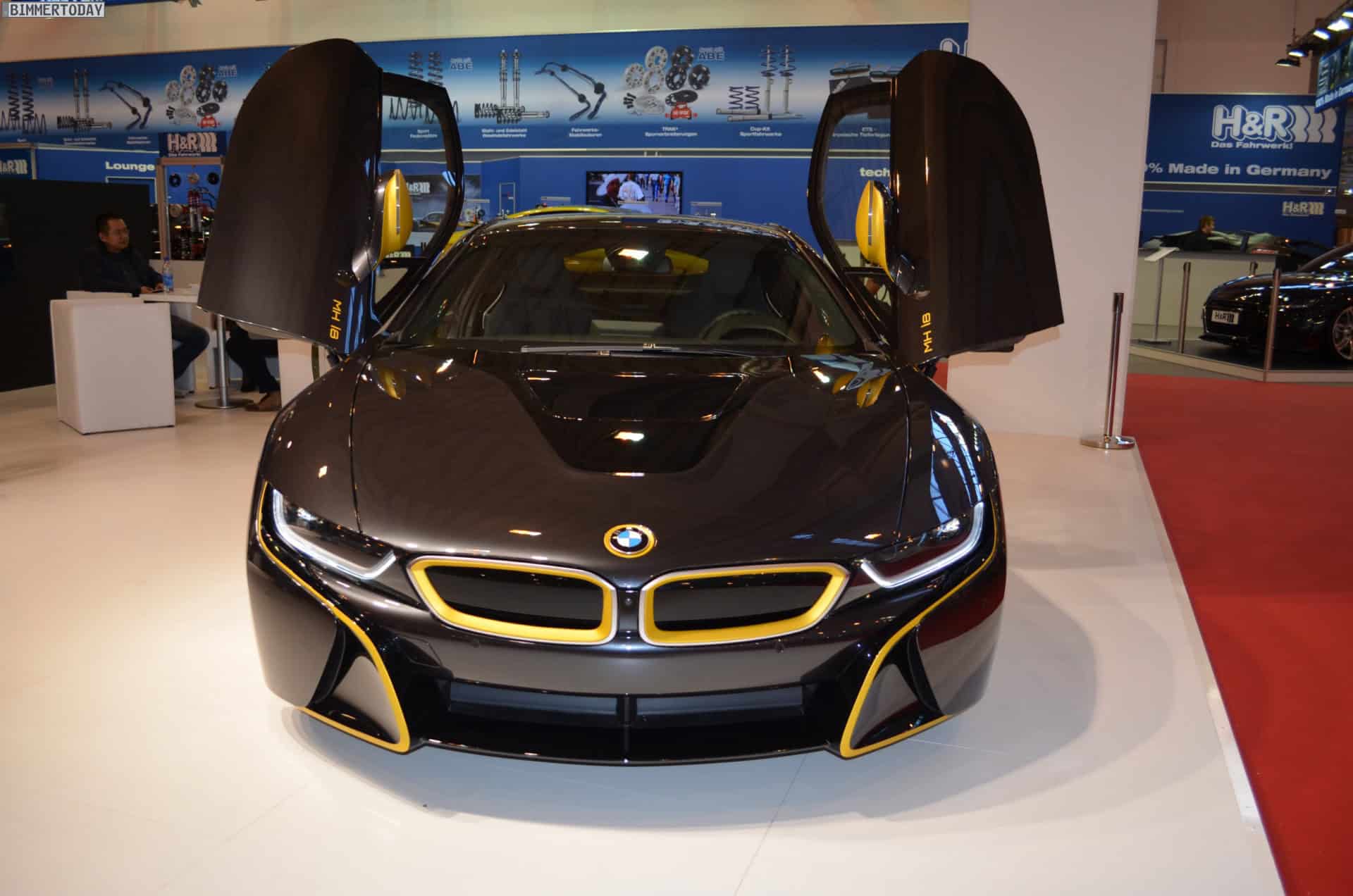 One of the undisputed stars of the 2014 Essen Motor Show 2014 is without doubt the BMW i8 by tuning shop Manhart. The plug-in hybrid sports car comes to the popular tuning show with a new paint job. The matte yellow accents are paired with the Sophisto Grey factory color.