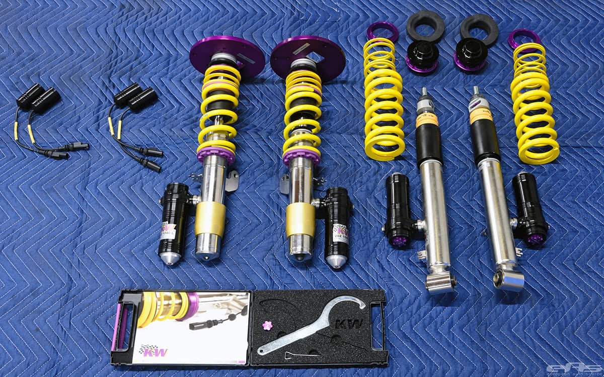 While lowering springs are perfect for the street, the track demands a bit more. This is why they opted for a set of KW Clubsport 2-way adjustable coilovers. The new coilovers enabled European Auto Source to dial-in the optimal settings for the highly technical Streets of Willow Raceway. These also provide the much needed lowering to adjust the vehicle and assure it sits closer to the ground to improve performance in cornering.