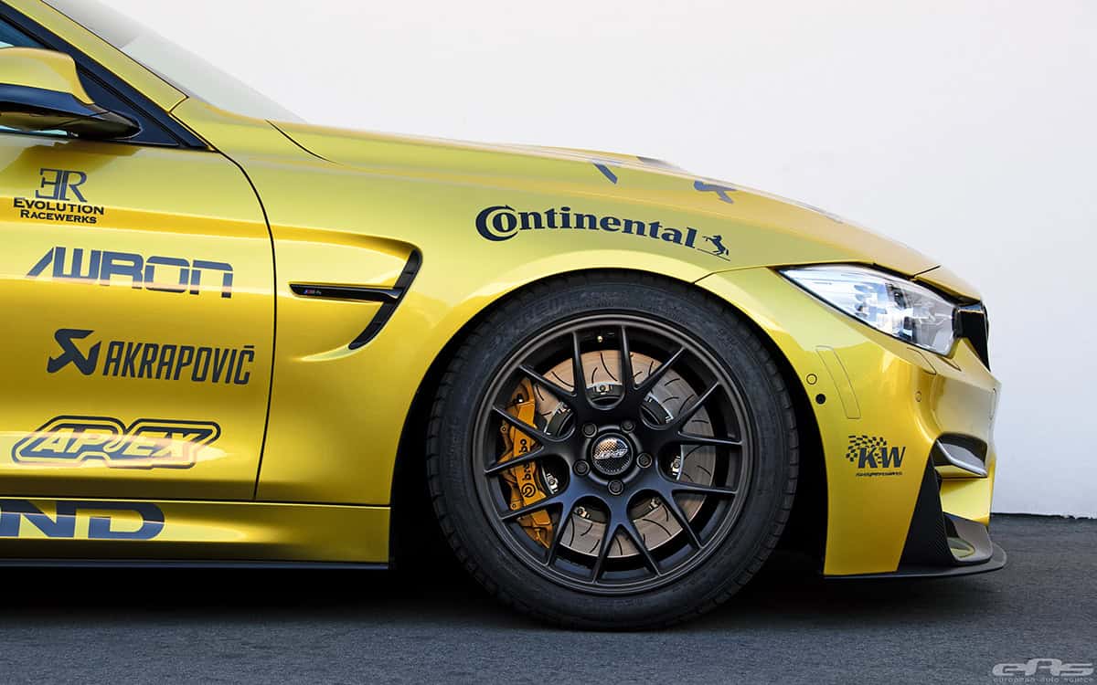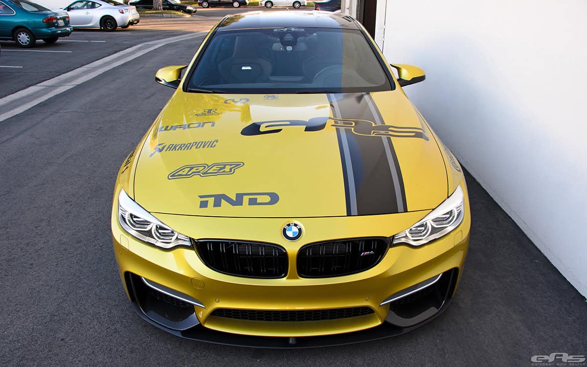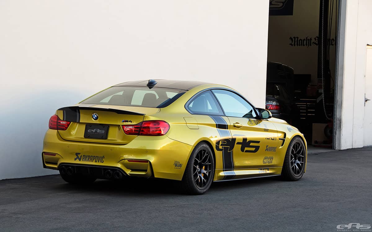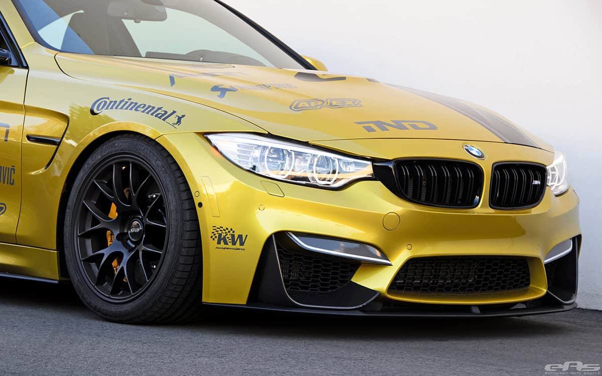 Each year, European Auto Source competes in the European Car Magazine Tuner GP with one of their project BMW cars. They have previously entered with a supercharged E92 M3 and a supercharged E86 Z4M, but this was the first year EAS showed up with a turbocharged car. They entered the contest with a beautiful Austin Yellow BMW F82 M4.