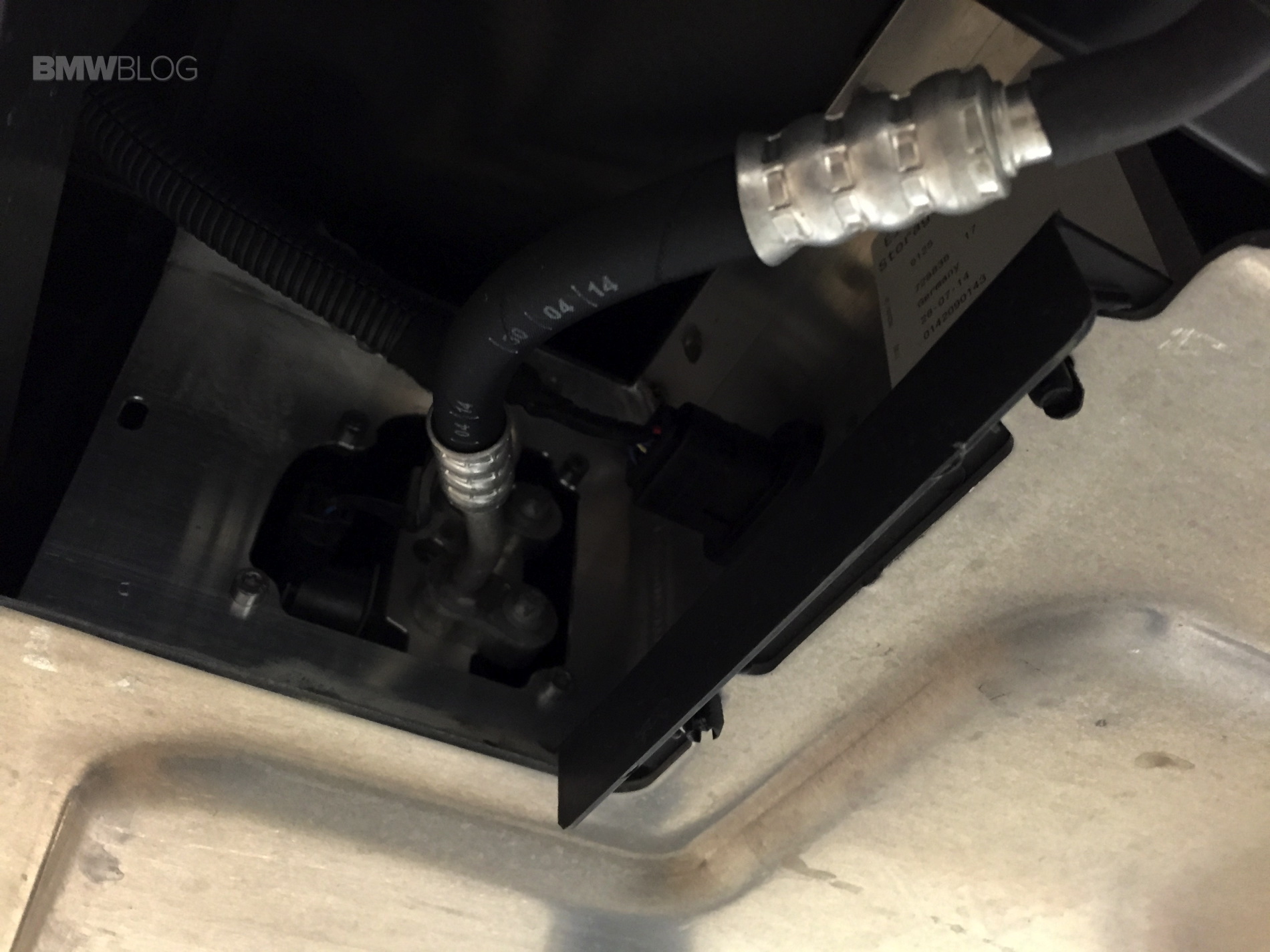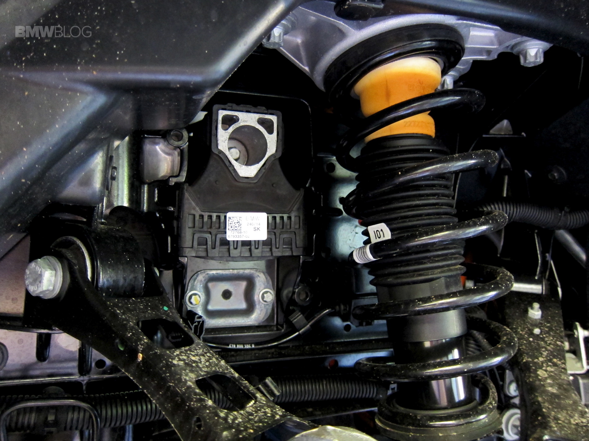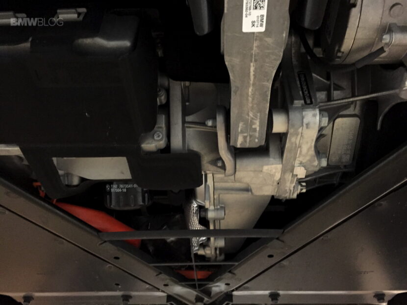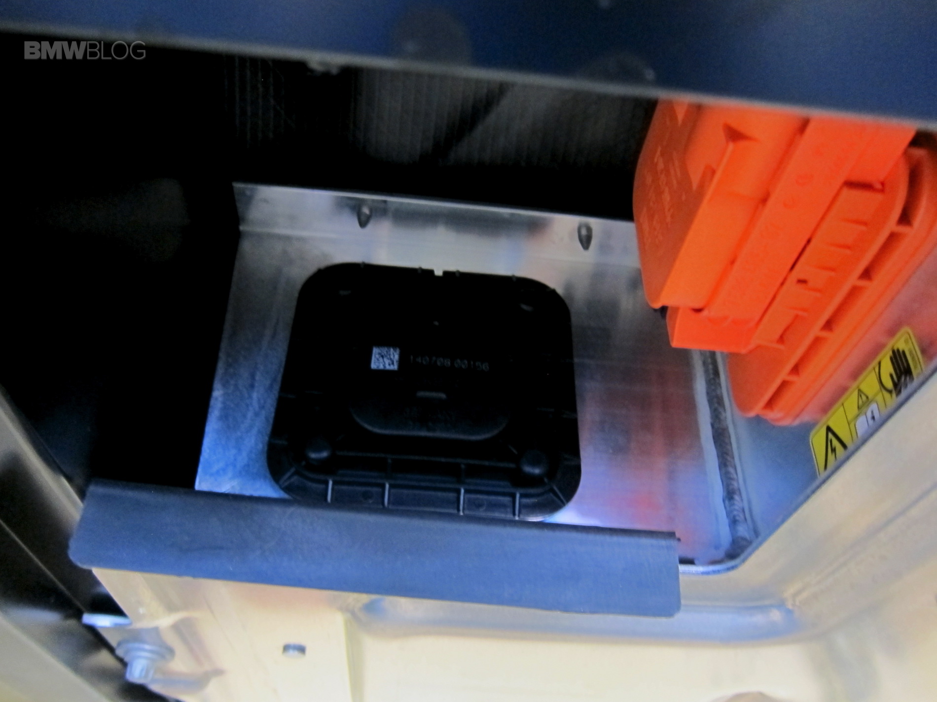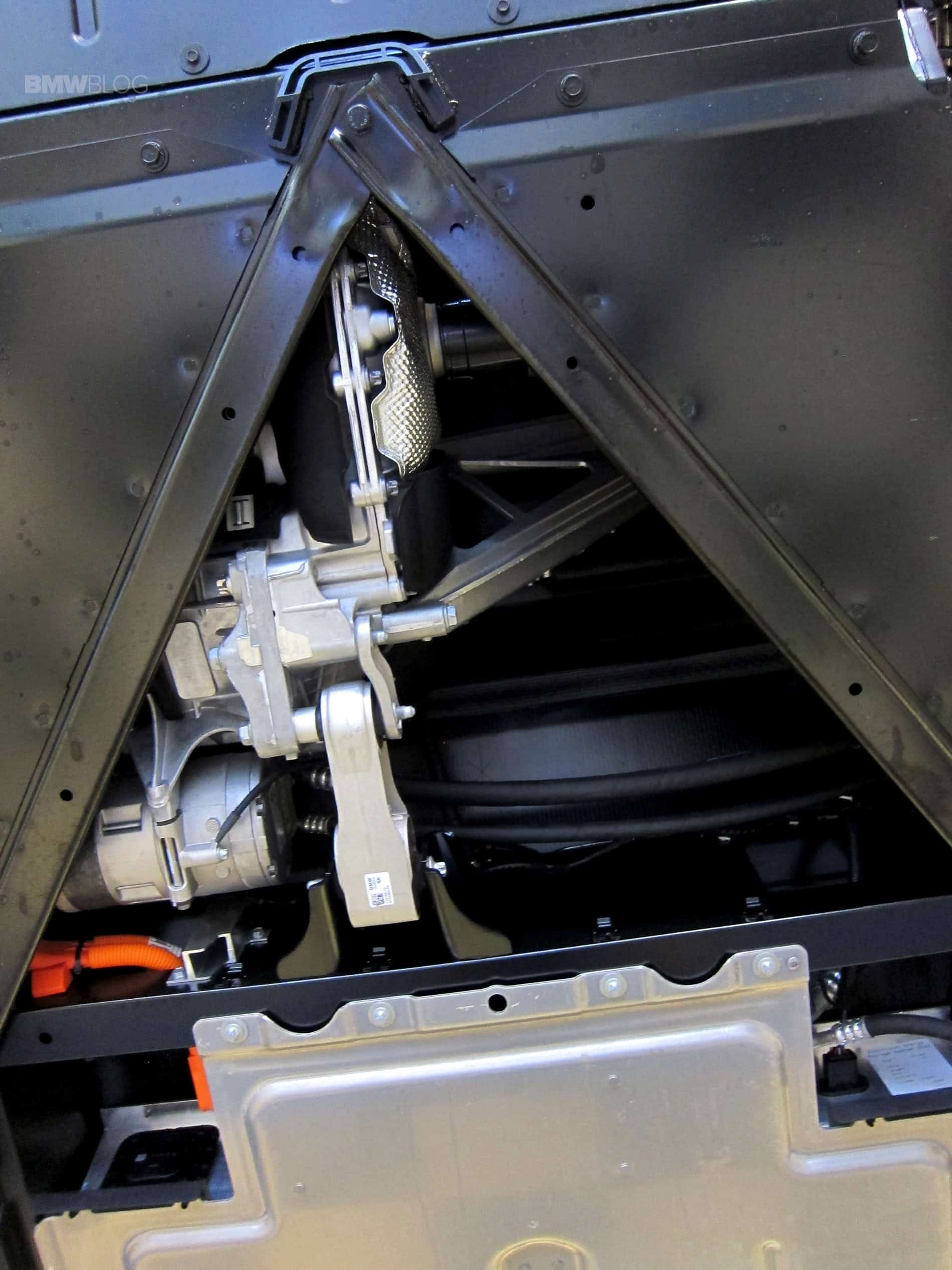 In the i3 BEV, on the passenger side, there is a large cavity – this is where the 600 cc two cylinder engine/generator lives. The i3 REx has an exhaust that aims directly at the ground. This area is just covered up with a panel in the i3 BEV.