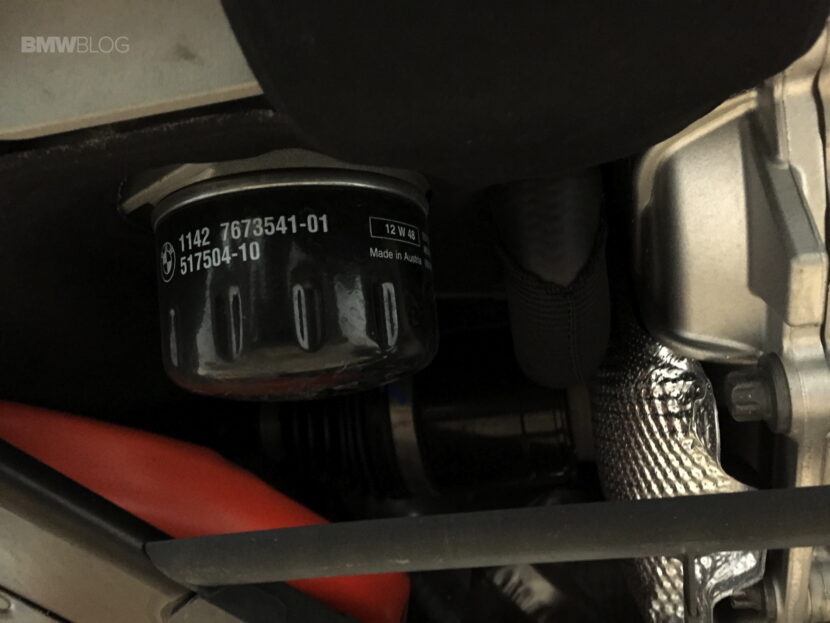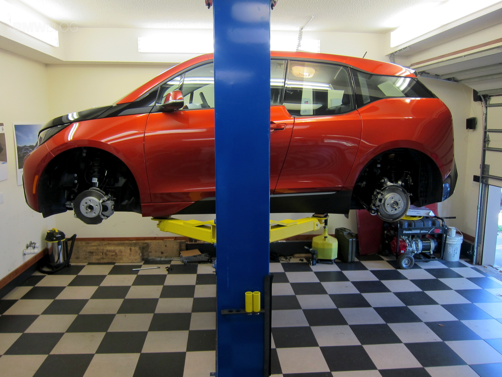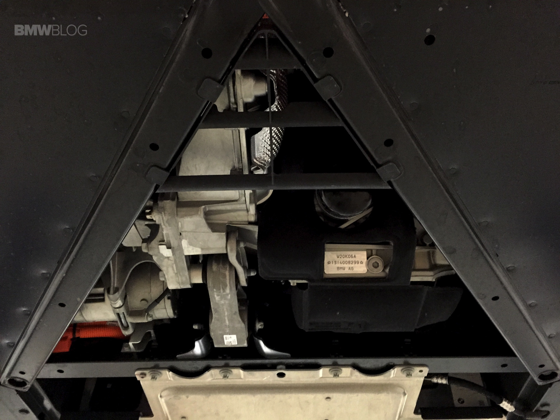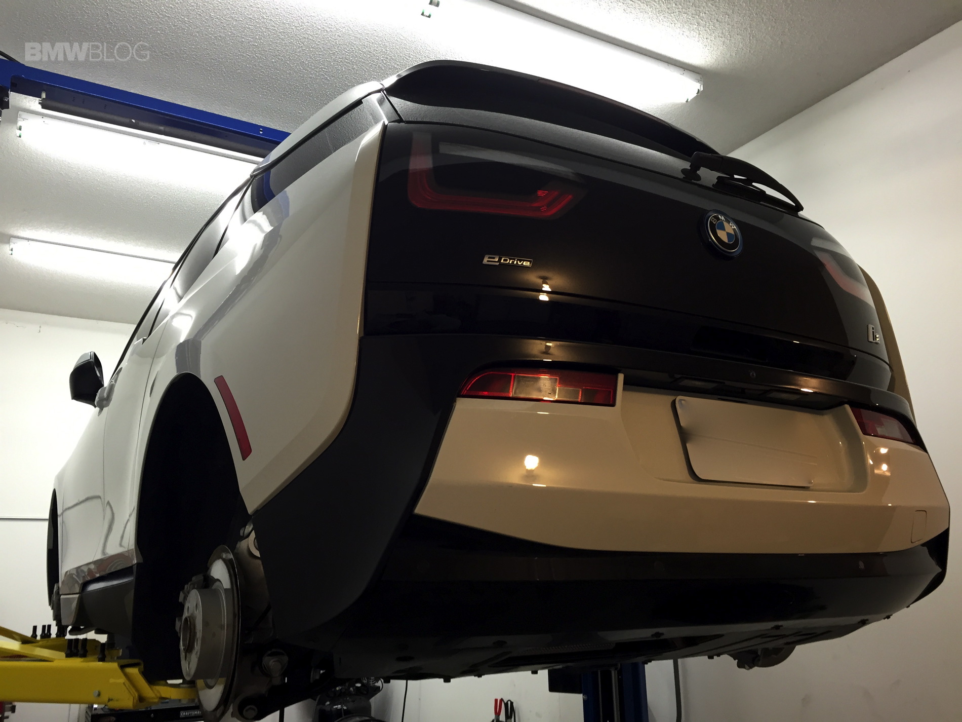 The oil filter in the i3 REx is readily spotted underneath as well.