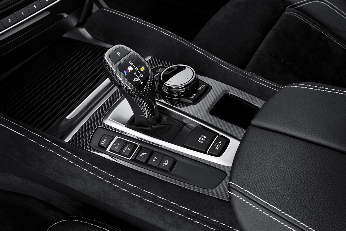 The new BMW M Performance Parts also include a host of attractive and sporting details for the interior of the BMW X6. The LED door sill plates in brushed stainless steel look with illuminated BMW M Performance lettering grab the attention the moment you open the front doors. Battery power means they are extremely easy to retrofit, with no need for laying cables. The BMW M Performance carbon interior trim strips mark out the interior clearly from the standard car’s and, like the Steptronic sport transmission’s carbon gearshift lever with BMW M logo, add a sporty and exclusive accent to the cockpit.