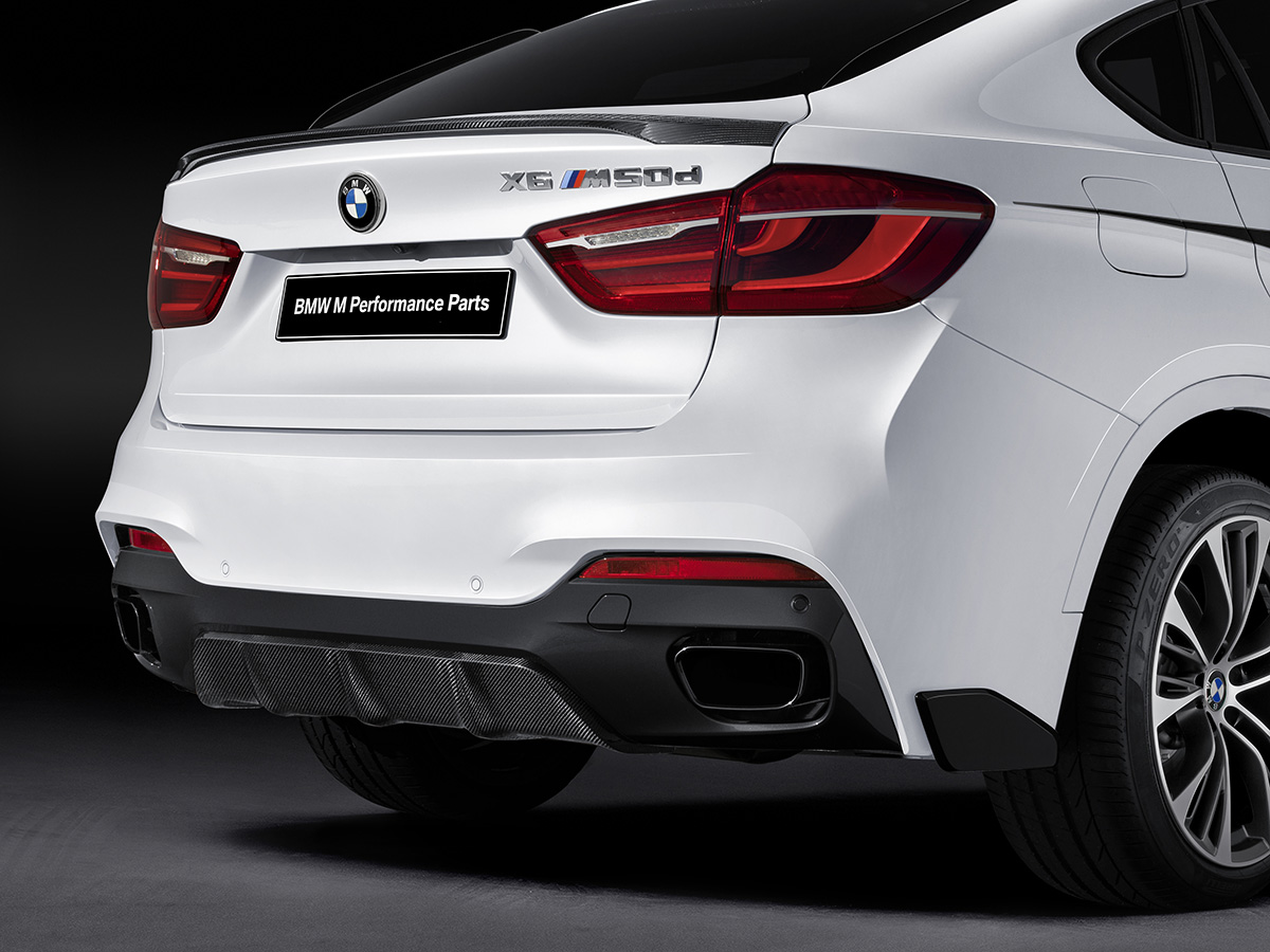 A wide selection of new BMW M Performance Parts available for the BMW X6 from the Accessories range allows owners to give the character of their large Sports Activity Coupe an even sharper sporting edge.