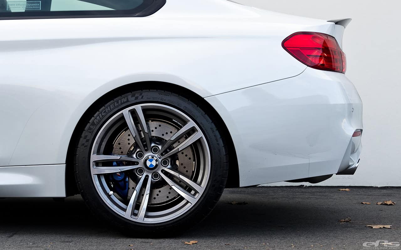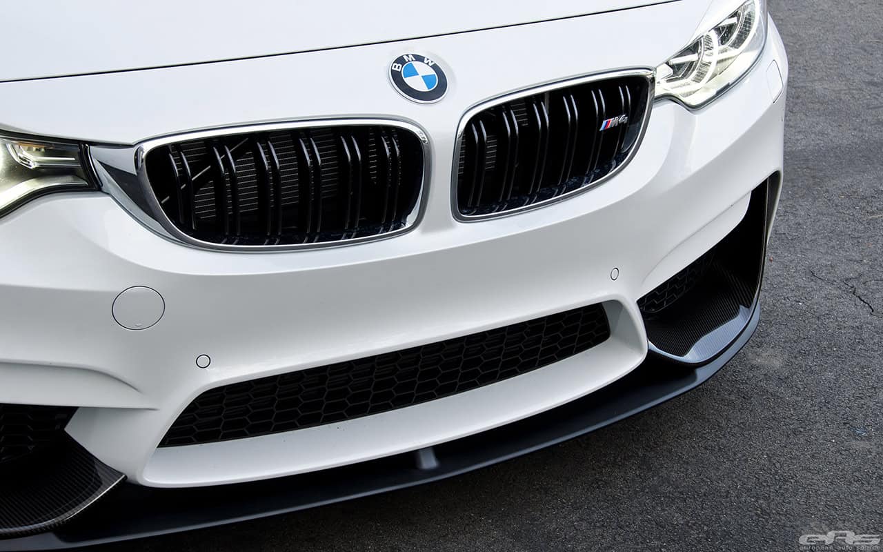 When European Auto Source started this build, the idea was to further accentuate the performance and aesthetics of the M3, without impacting either in a significant manner. After arriving at the shop, the Alpine White F82 M4 received the BMW M Performance carbon fiber front splitters and lower splitter and a BMW M Performance carbon fiber trunk spoiler for starting the build properly.