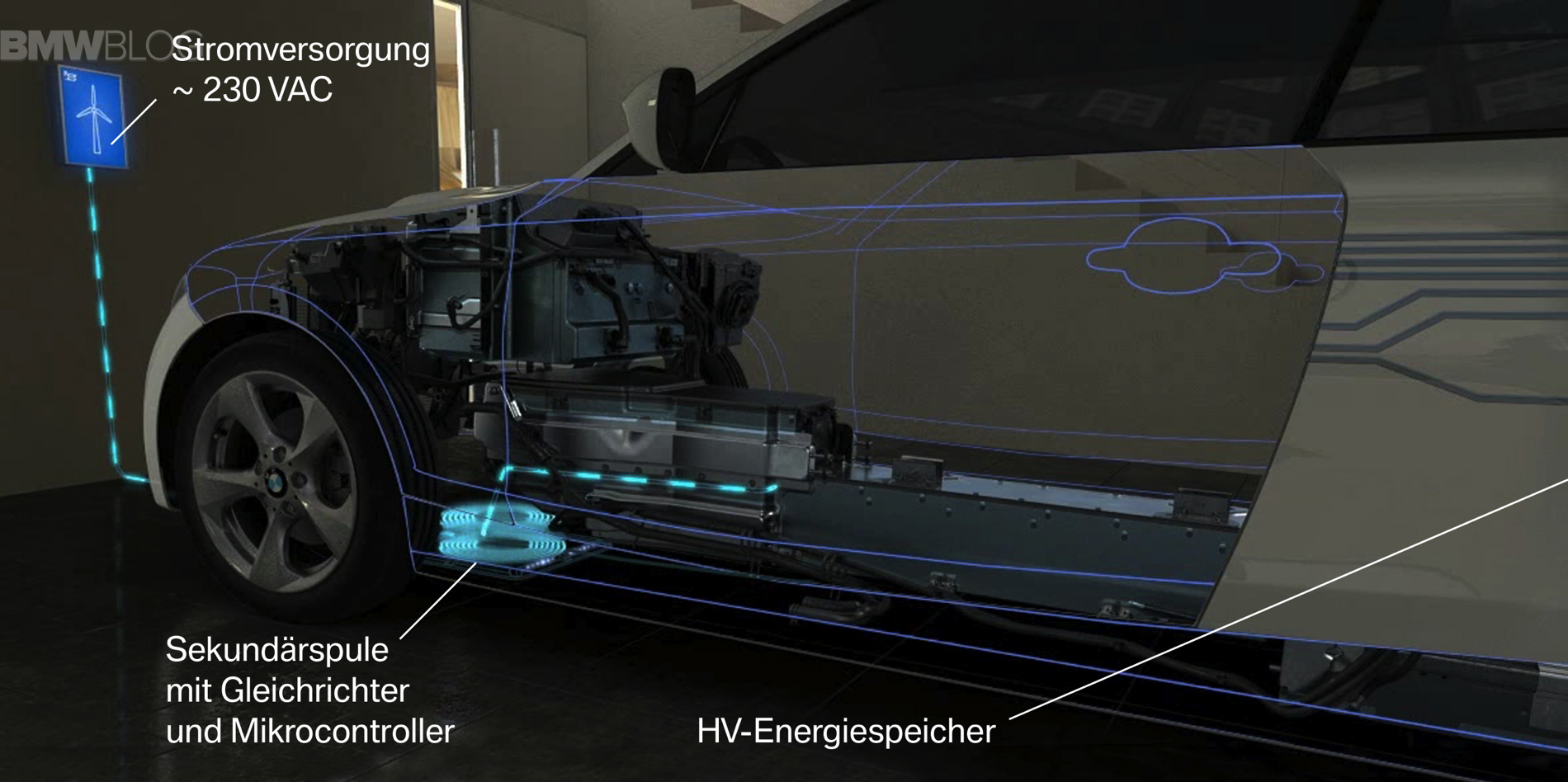 At 2015 CES, BMW will present an alternative solution: in a BMW i8 it will demonstrate a research application for inductive – i.e. wireless – battery charging.