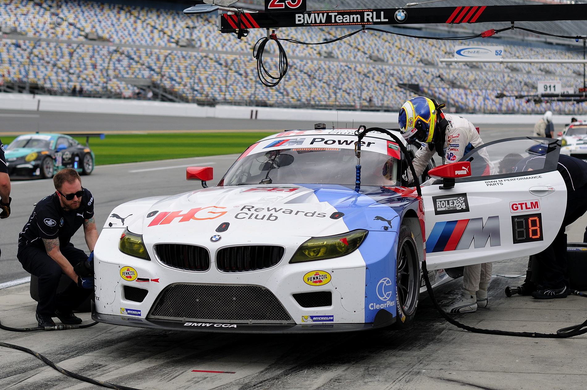 “That was a nail biter for the last ten to fifteen minutes,” said Jens Marquardt, BMW Motorsport Director.” The final yellow came in just the right moment for us so we were lucky at the end. I should give a compliment to everyone involved for the hard work here and back in Munich over the winter to build some top speed into the BMW Z4 GTLM that we were lacking here last year. We can definitely see the improvement. We aren’t there yet, but the guys had something in their hands that they could fight with today, and in that respect I send big, big congratulations to all the drivers and the team. They really fought hard and deserve this second-place. I would have been super happy with a win, but only one-half second behind at the finish is a result we can be proud of. Second and fourth make a fantastic start the 2015 season and the 40th anniversary here for BMW.