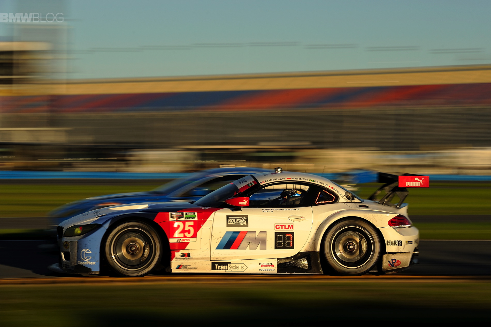 Bill Auberlen, Augusto Farfus, Bruno Spengler, and Dirk Werner completed 725 laps around the 3.56-mile, 12-turn Daytona International Speedway road course in the No. 25 machine during the twice-around-the-clock endurance classic. Werner, the finishing driver, took the checkered flag a scant 0.478 seconds behind the winning No. 3 Corvette.