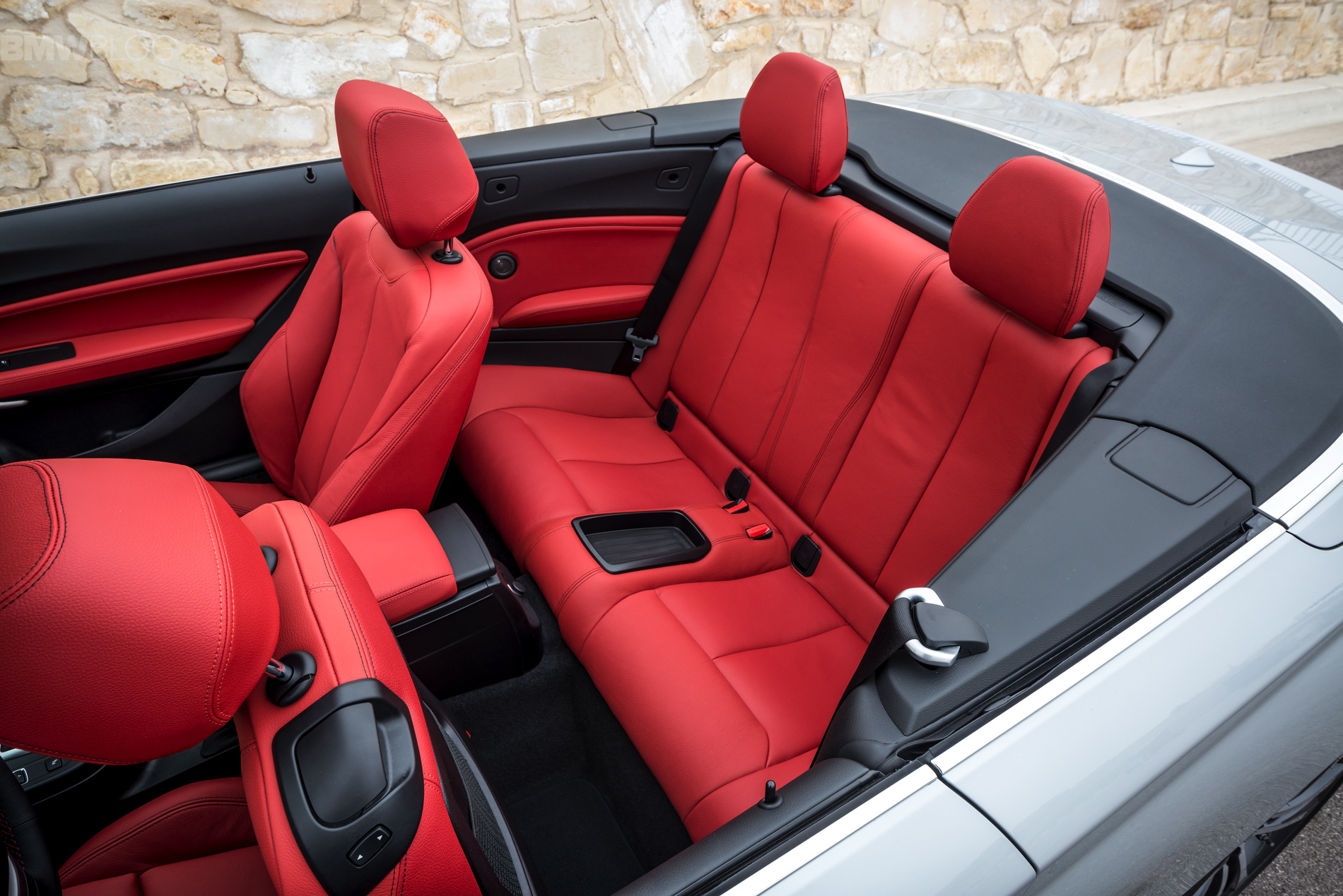 With an overall length of 4.43 meters, the 2 Series Convertible dominates its predecessor by 7.2 centimeters, while being 2.6 centimeters wider. BMW also promises more space for all occupants and has the boot volume increased by 30 liters to a total of 335 liters. With the roof open, there are 280 liters available, 20 liters more than the “old” BMW 1 Series Convertible E88.