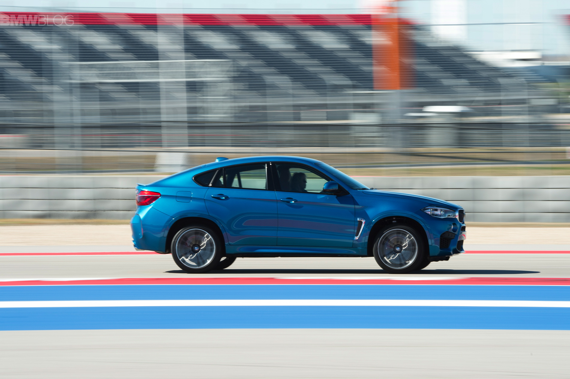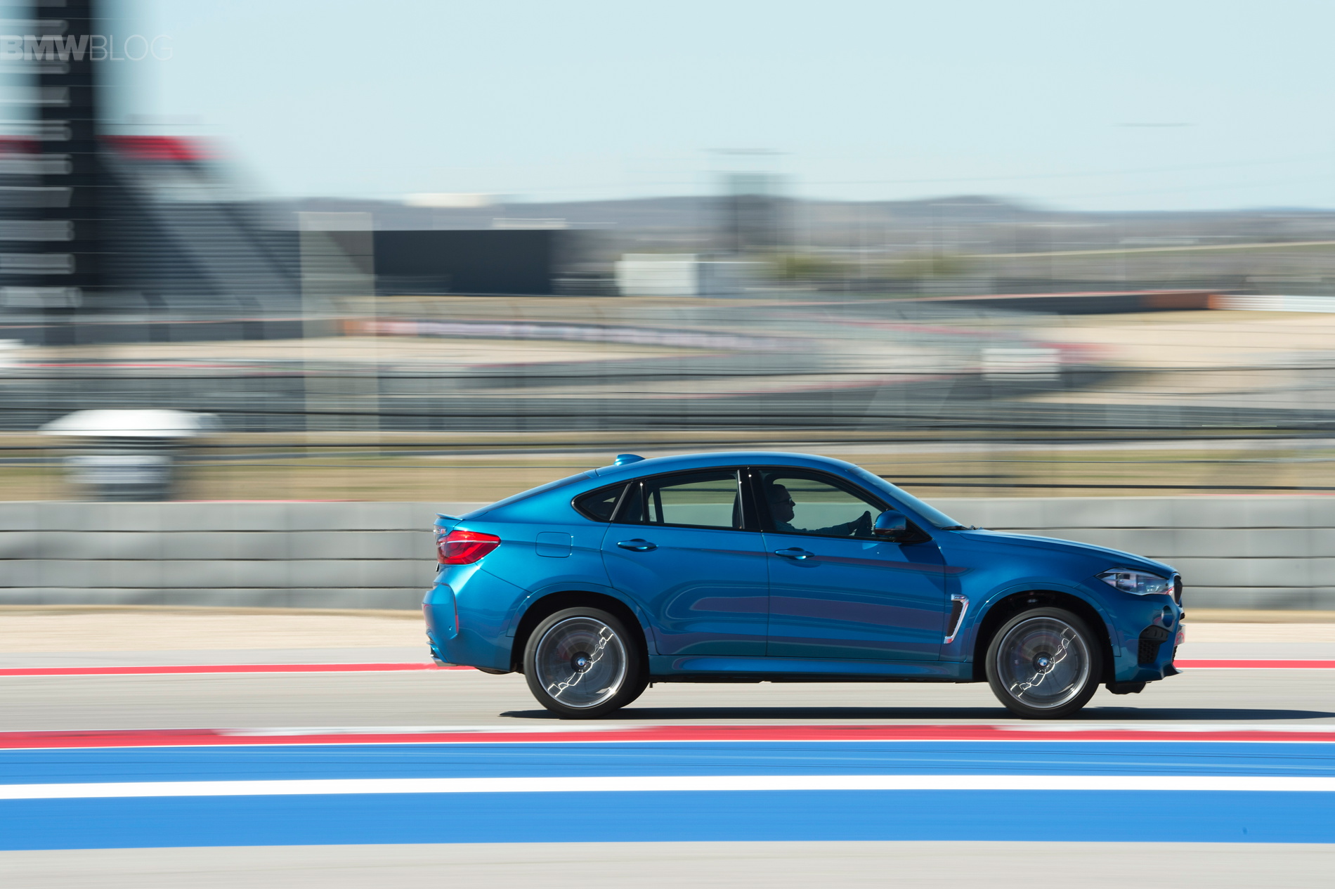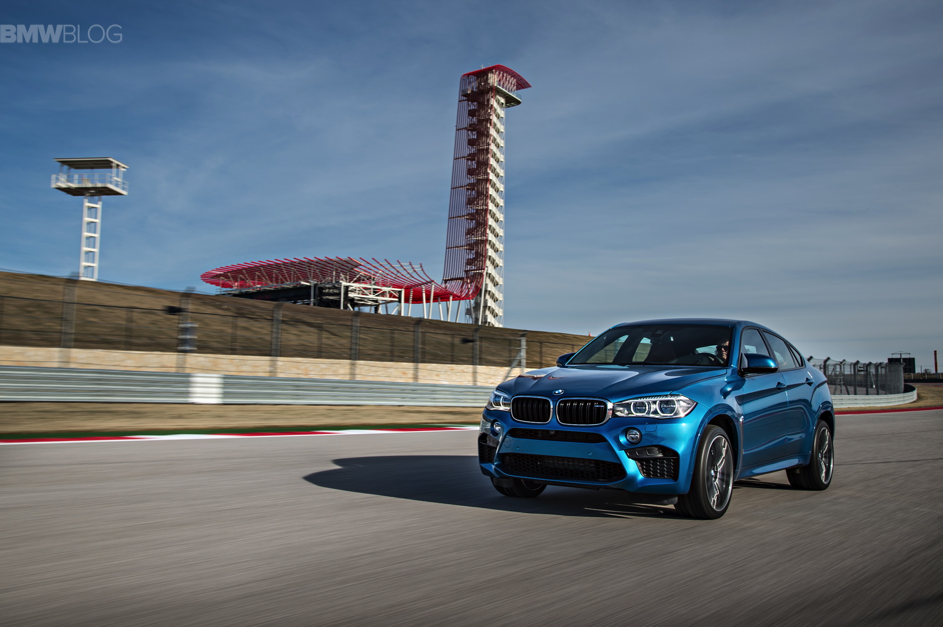 Sporting the launch color, Long Beach Blue Metallic, the new X6 M looks just as fast as it drives, and fits perfectly within the beautiful Texan race track.