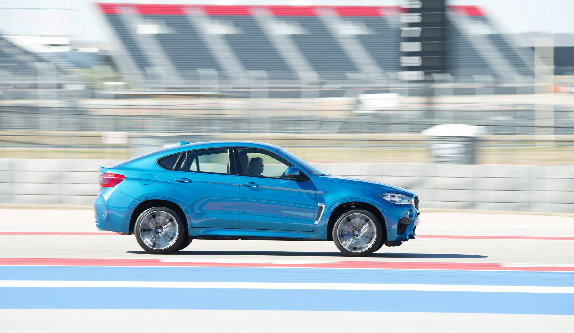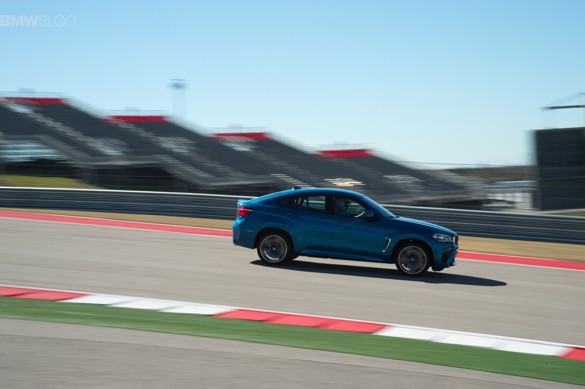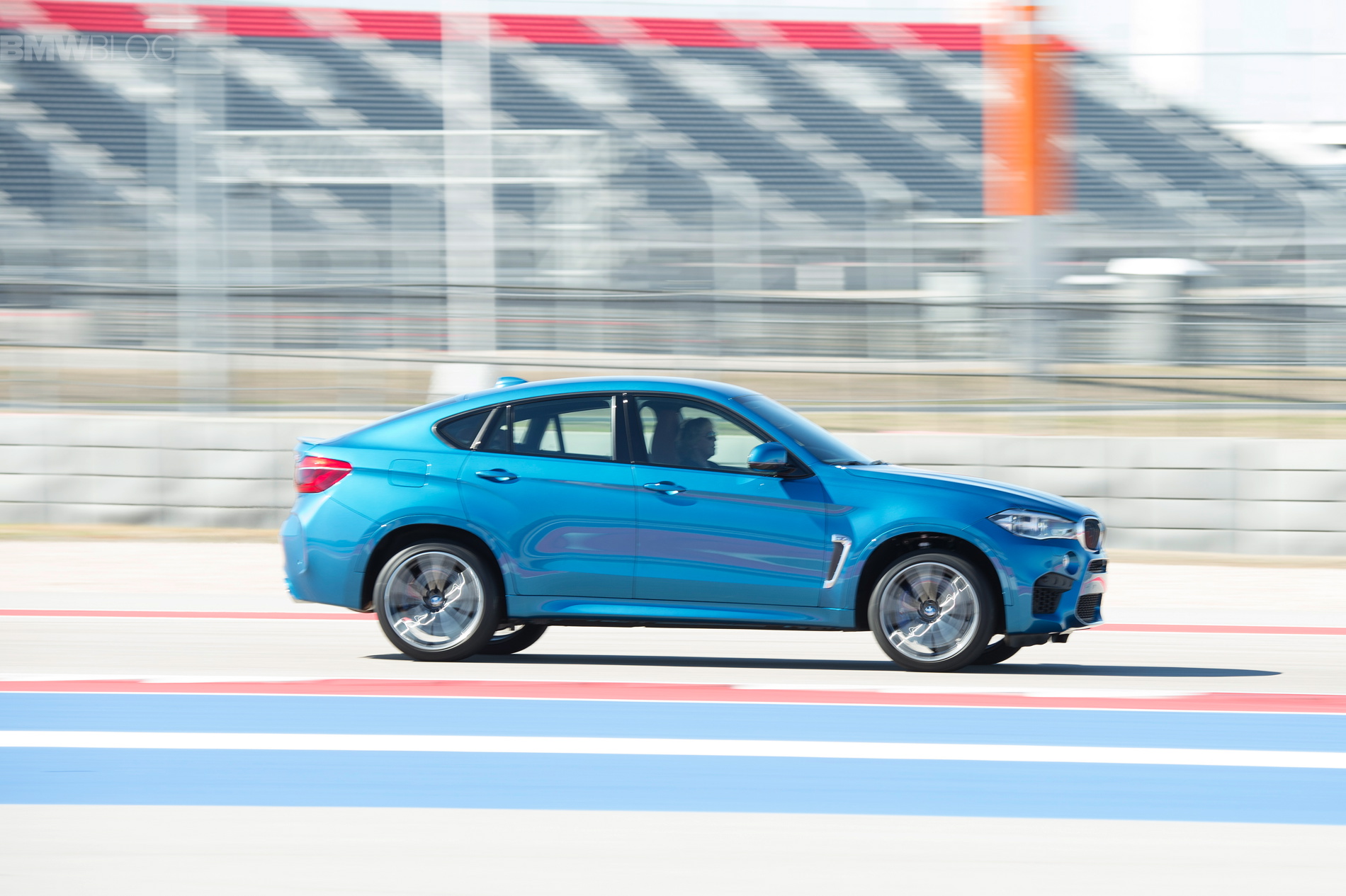 Sporting the launch color, Long Beach Blue Metallic, the new X6 M looks just as fast as it drives, and fits perfectly within the beautiful Texan race track.