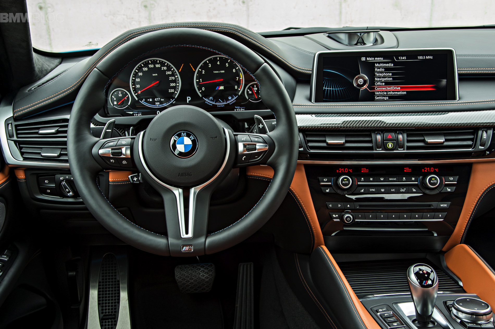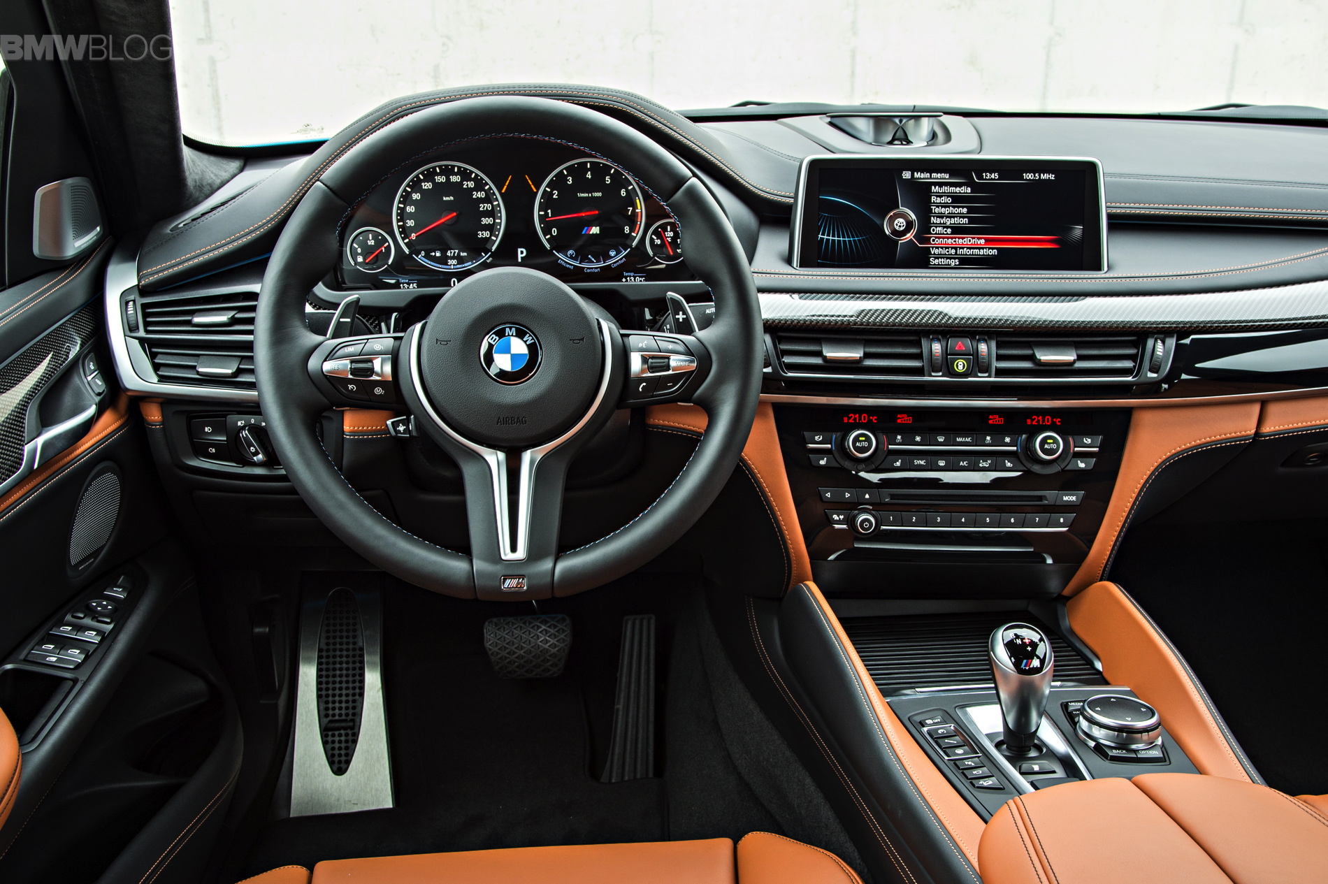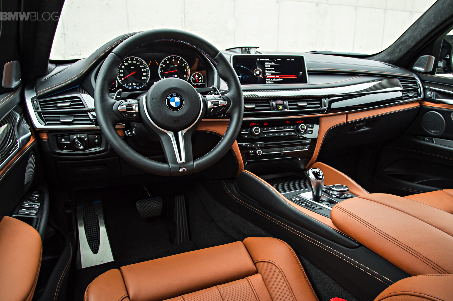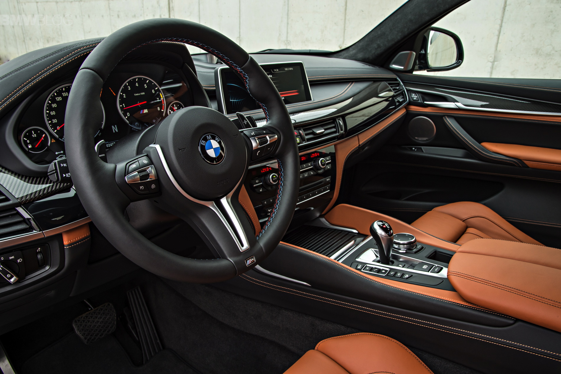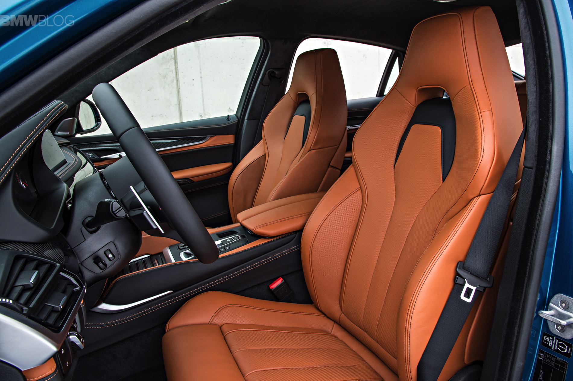 As soon as you open the door, you notice this is not just an X6 but rather an M vehicle. You can see ///M on the door sills and footrest and the ///M instrument cluster and seats – which are very supportive on a track and really pinch you in.