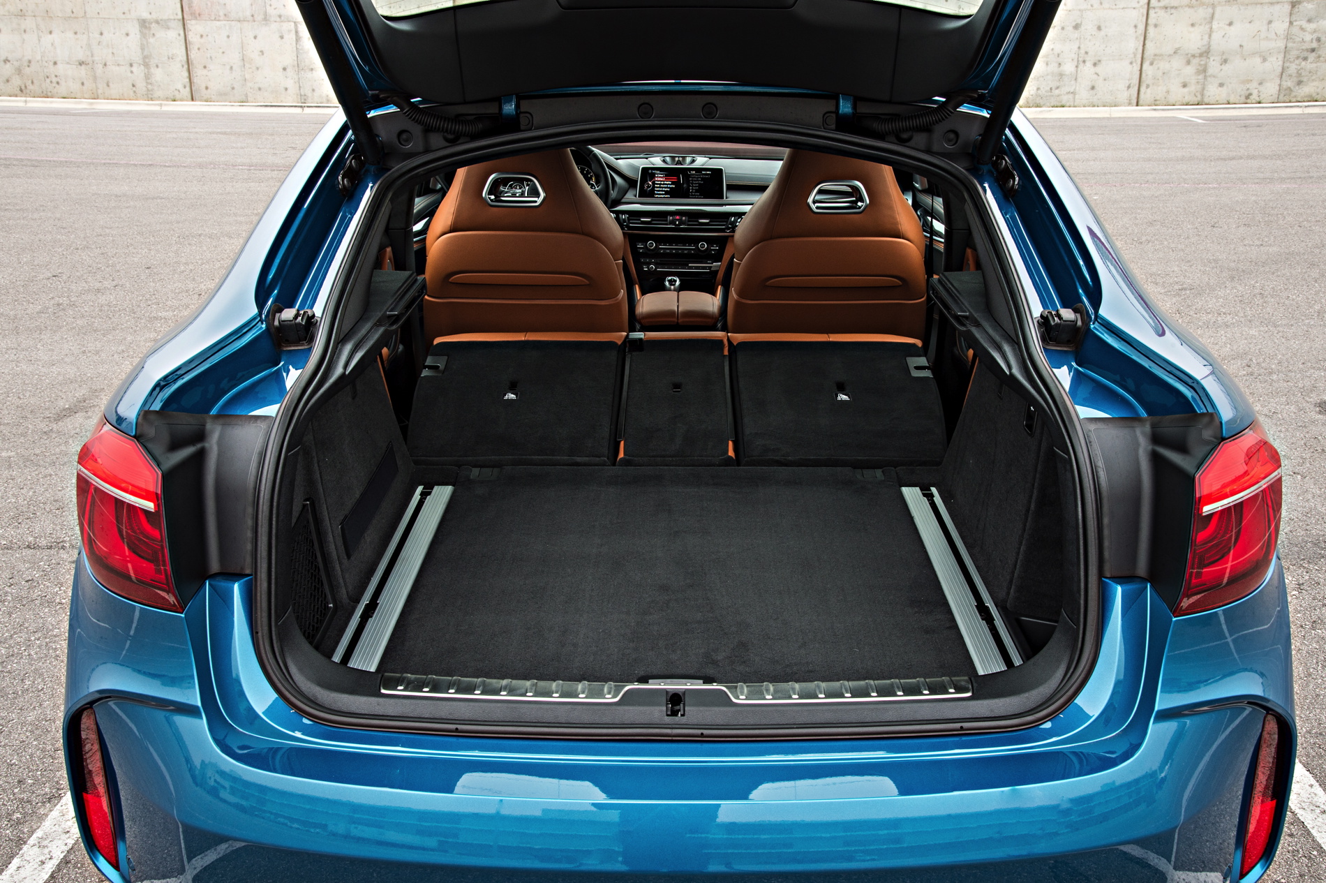 An interesting deviation from the launch of the first X6 M is there is a bench seat in the back instead of two single seats. This additional seat makes the new X6 M so much more practical. The rear seats will fold down in a 40/20/40 split. View out the back of the X6 M is fairly limited and I found myself using the back up camera more than in our BMW i3.