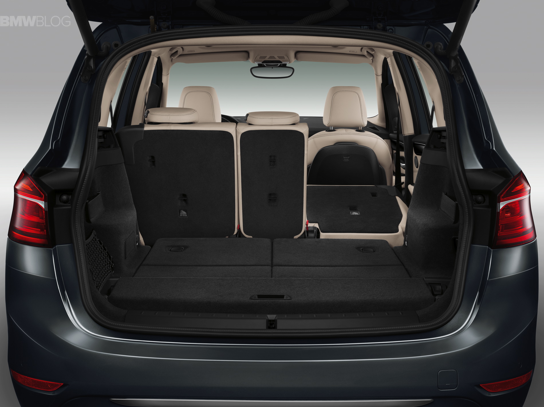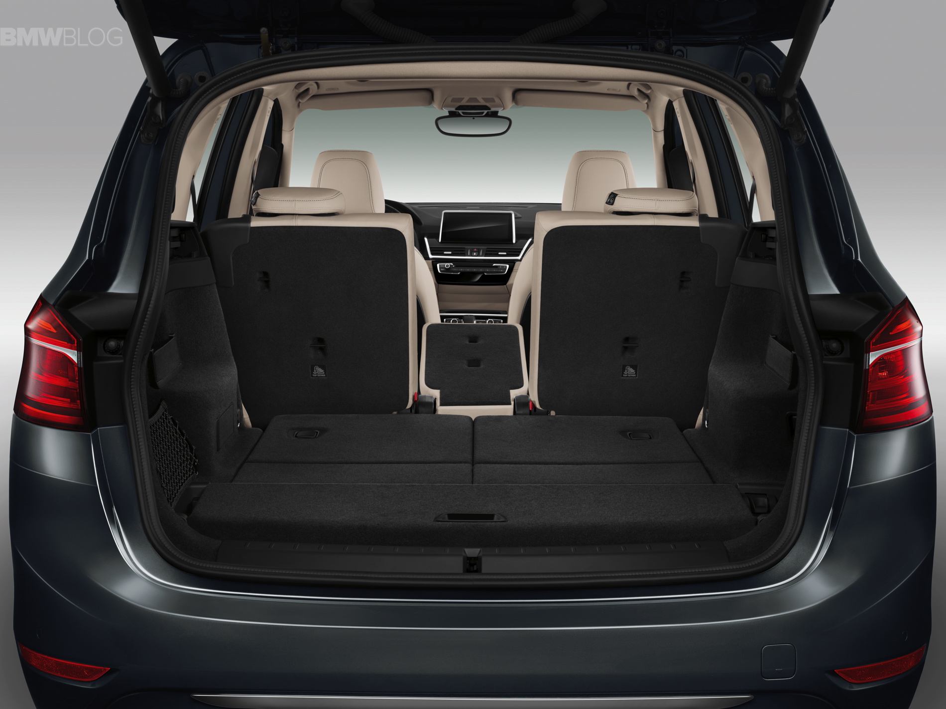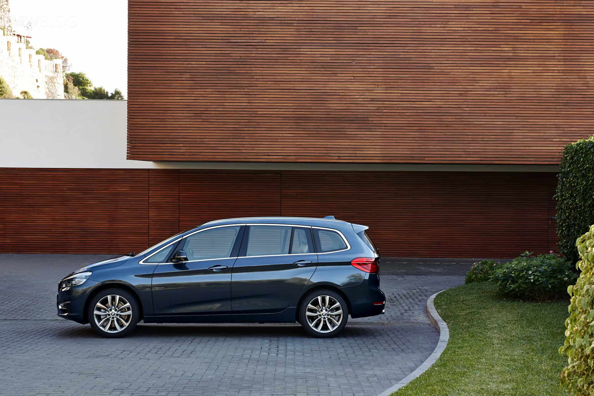 In addition to the standard version, the new BMW F46 2 Series Gran Tourer is available in a further four model variants: Advantage, Sport Line, Luxury Line and M Sport. The exterior dimensions are: 4,556 x 1,800 x 1,608 mm (179.3 inches long, 70.9 inches wide and 63.3 inches tall). A mere 214 millimeters longer and 53 millimeters higher than the BMW 2 Series Active Tourer, the new BMW 2 Series Gran Tourer provides a further significant increase in space thanks to its long wheelbase, measuring 2,780 millimeters. BMW 2 Series Gran Tourer offers ample space and a generous luggage compartment that can be extended in capacity from 645 to 805 liters (67.3 cubic feet).