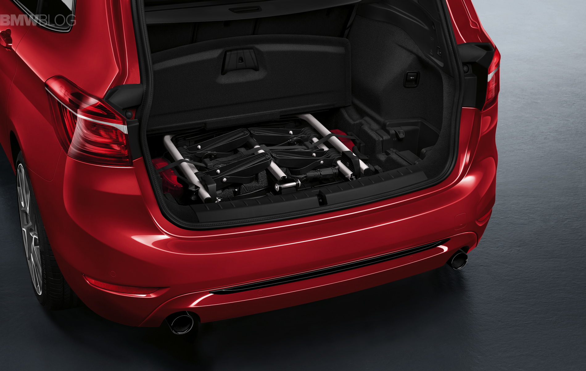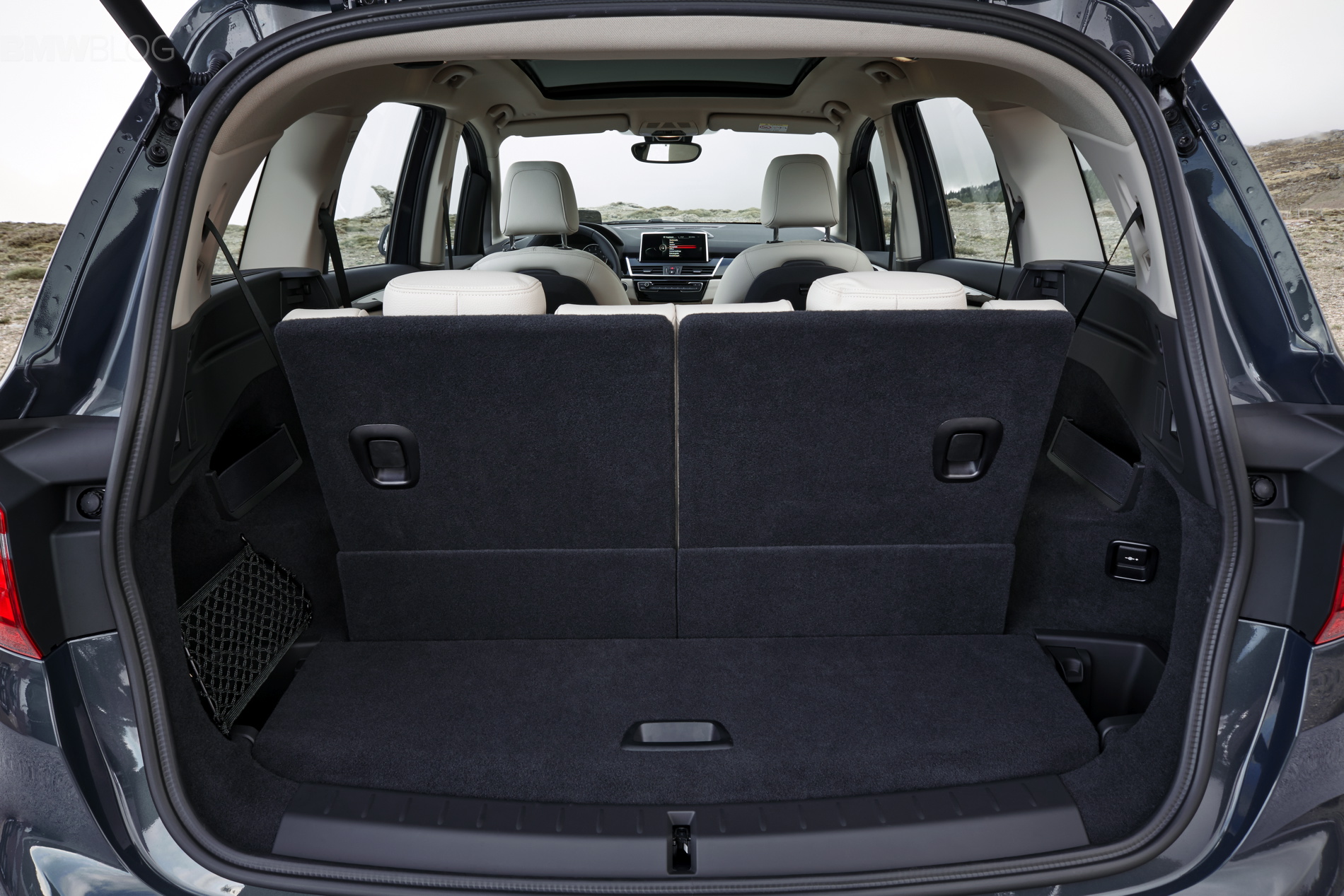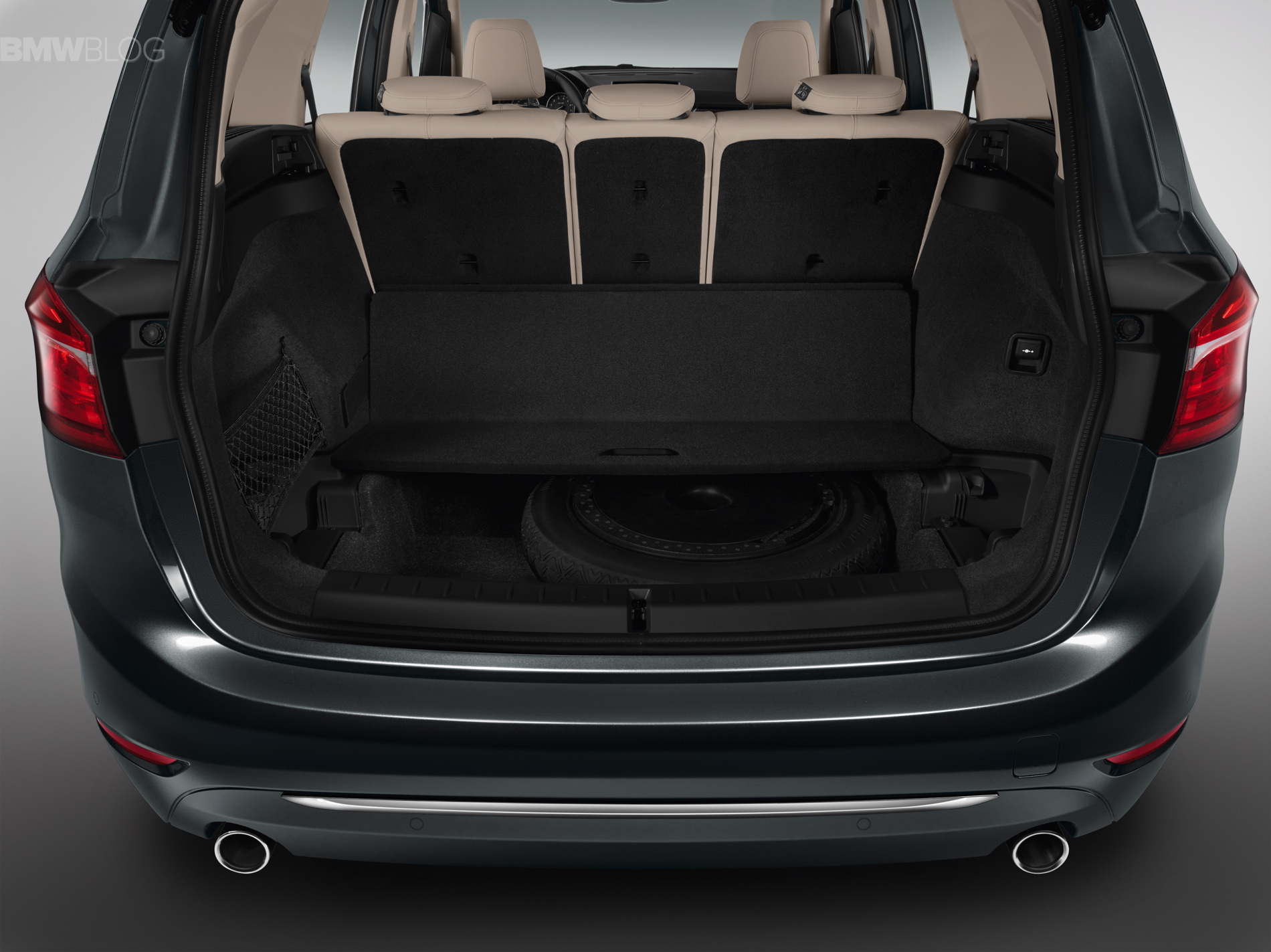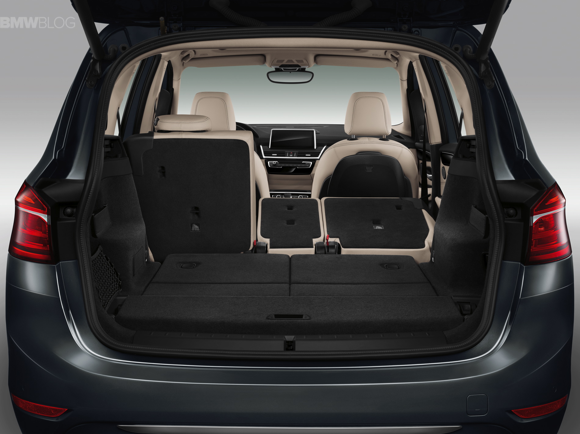 In addition to the standard version, the new BMW F46 2 Series Gran Tourer is available in a further four model variants: Advantage, Sport Line, Luxury Line and M Sport. The exterior dimensions are: 4,556 x 1,800 x 1,608 mm (179.3 inches long, 70.9 inches wide and 63.3 inches tall). A mere 214 millimeters longer and 53 millimeters higher than the BMW 2 Series Active Tourer, the new BMW 2 Series Gran Tourer provides a further significant increase in space thanks to its long wheelbase, measuring 2,780 millimeters. BMW 2 Series Gran Tourer offers ample space and a generous luggage compartment that can be extended in capacity from 645 to 805 liters (67.3 cubic feet).