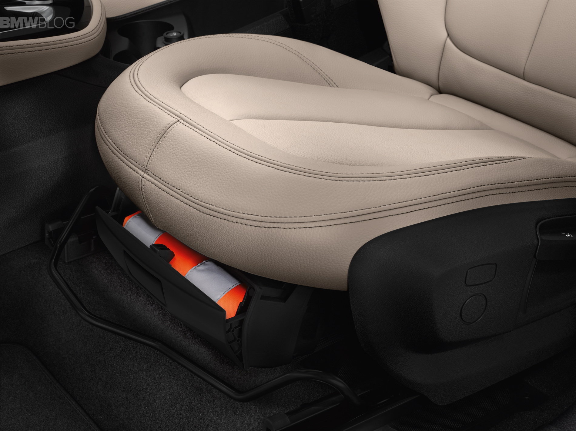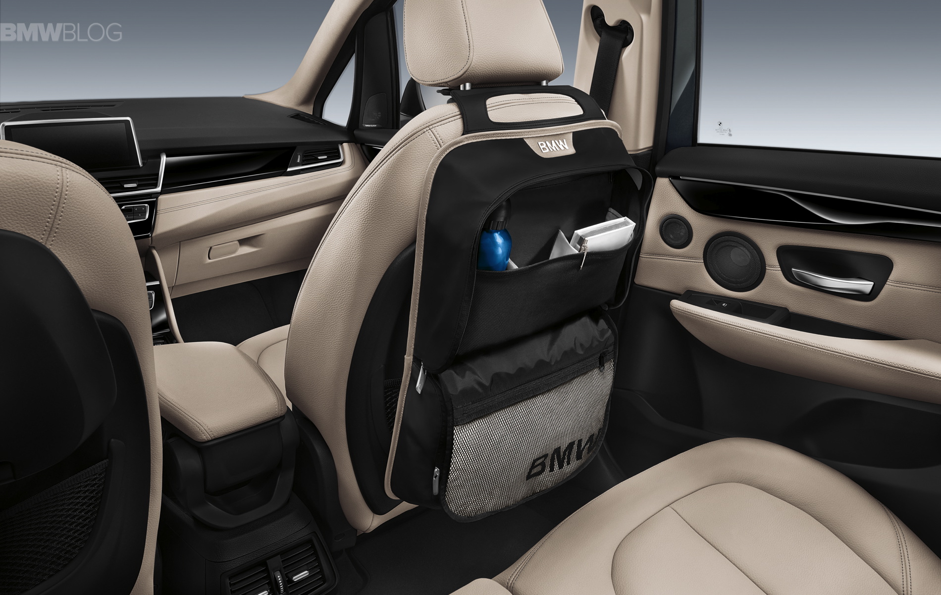 Yet another useful highlight inside the new BMW 2 Series Gran Tourer are the “monorails” on the backrests of the front seats, to which a high-quality folding table can be attached and adjusted for both height and tilt angle.