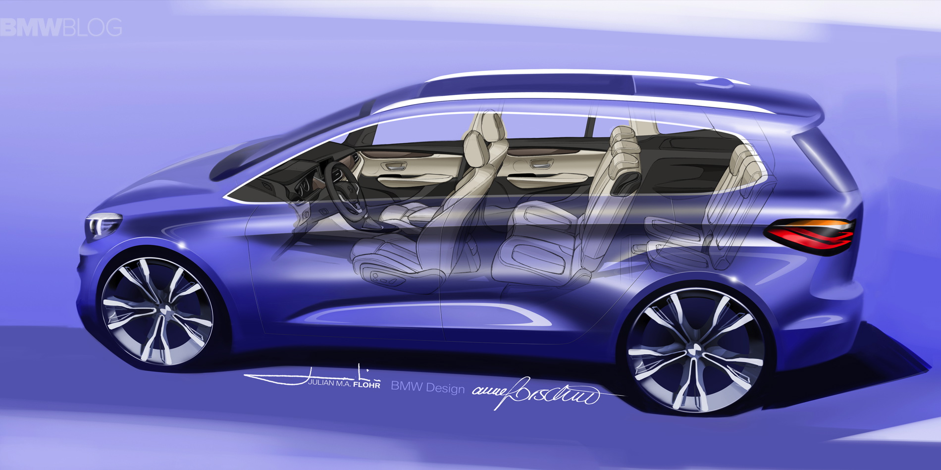 The design resembles a minivan with a premium look with the Hofmeister kink on the D-pillar and the typical kidney grille and double-round headlamps. In typical BMW style, the taillights form an L-shape, their two LED-fed light banks inclining towards the center to support the dynamic rear-end look. Aerodynamic solutions such as the aeroblades – vertical air deflectors – are placed behind the D-pillars round.