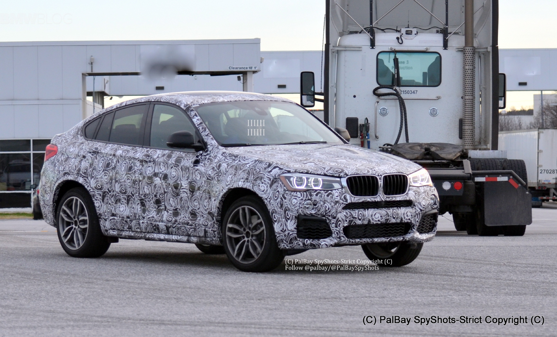 The upcoming BMW X4 M40i was spotted for the first time on U.S. soil. The South Carolina-based spy photographer, Palbay, spied an X4 M40i prototype as it was being driven near the BMW Spartanburg plant. Compared to the BMW X4 X35i with M Sport Package, the X4 M40i has slightly different air intakes openings on the side, a redesigned front and rear bumper, and two exhaust pipes surrounding the rear diffuser.