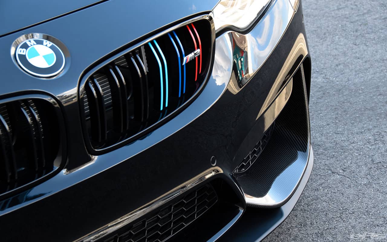 After the performance tuning was added, it was time to add some aero parts to the M3. The tuning shop installed a set of BMW M Performance parts, starting with the M Performance front splitter and rear trunk spoiler. The BMW gloss black kidney grille surrounds are another nice touch, while the iND painted front reflectors and gloss black kidney grilles work perfectly in complementing the look of the M3 design. The addition of the RKP rear spoiler made of carbon fiber, matched with Macht Schnell wheel spacers, puts the final touches on this project.
