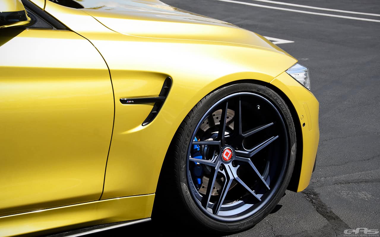 Now, this is one of those well-made projects with every detail carefully planned. Overall, the Austin Yellow BMW F82 M4 is a great starting point for any build. Its aggressive design lines and interesting body panels are the perfect starting point for a detailed customization job. This project was completed by the folks at European Auto Source who first installed a set of new wheels.