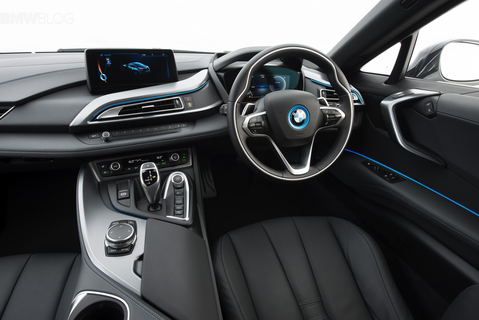 The innovative vehicle architecture of the BMW i8 comprises two elements: the Life module, the passenger cell made of carbon fiber reinforced plastic (CFRP), and the aluminum Drive module, which incorporates the entire drivetrain and chassis technology. The i8′s layout of chassis and passenger cell is a bit different than the i3′s.. The i8 uses a smaller battery pack and it goes into a central tunnel – again kept as low as possible. The tunnel splits the driver and passenger side of the car. It looks like a central backbone design with sub-frames fore and aft for motors and suspension.