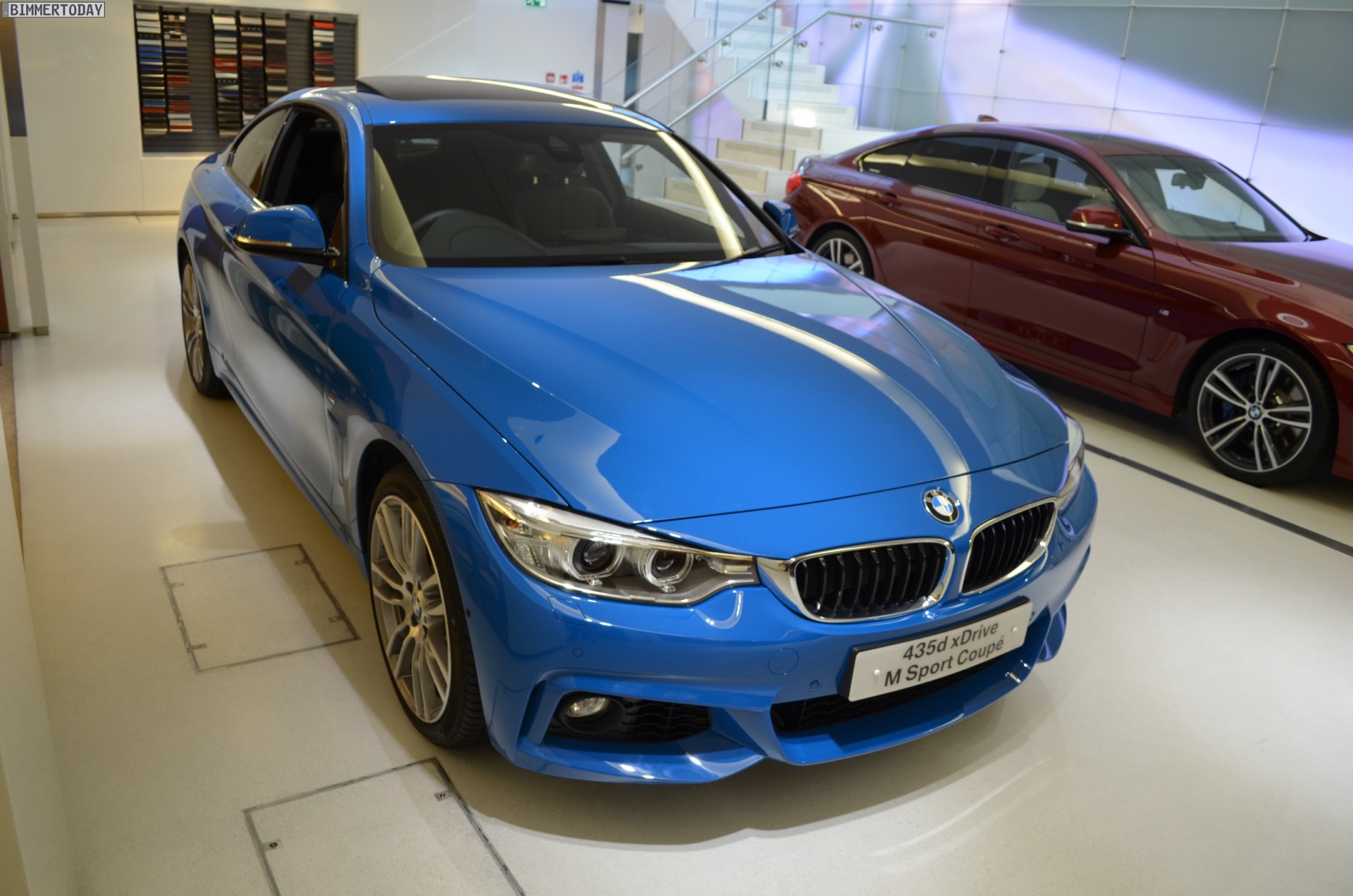 This 4 Series Coupe is in fact the high-end diesel 435d xDrive with M Sport Package and 313 horsepower under the hood. In just 4.7 seconds, the BMW 435d xDrive Coupe accelerates to 100 km/h and has a top speed of 250 km/h. The prices for the top diesel start in Germany at 54,600 euros, but with the special paint job and the M Sport Package, customers are looking at around 60,000 euros.