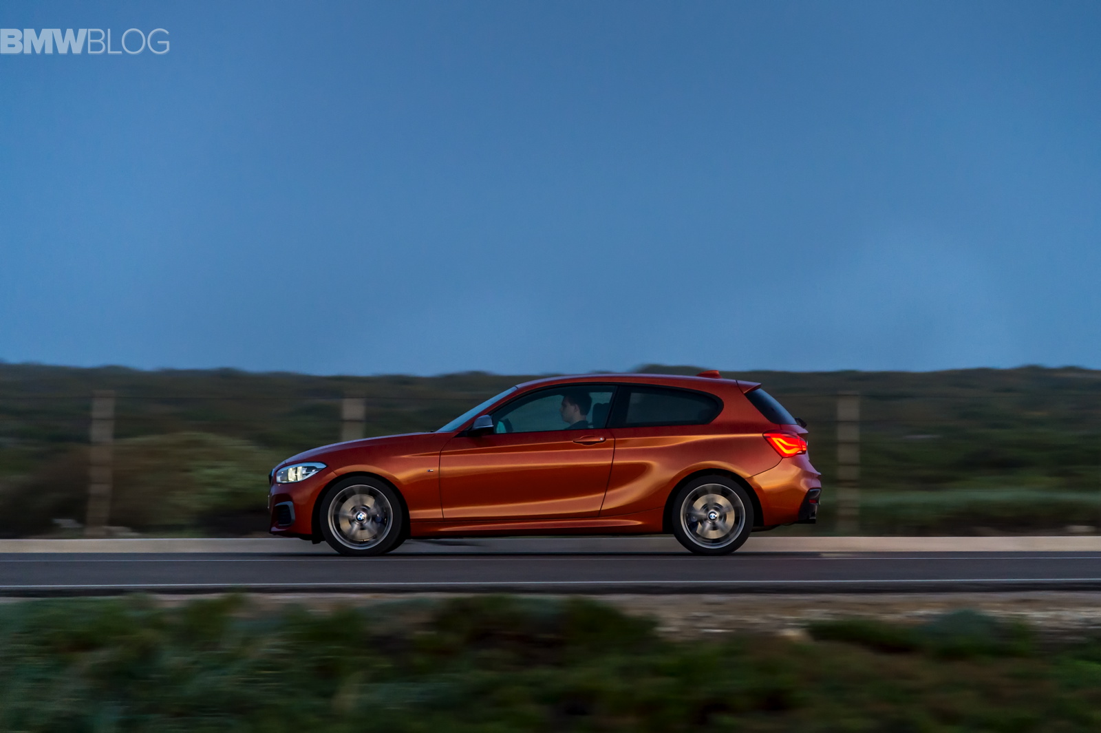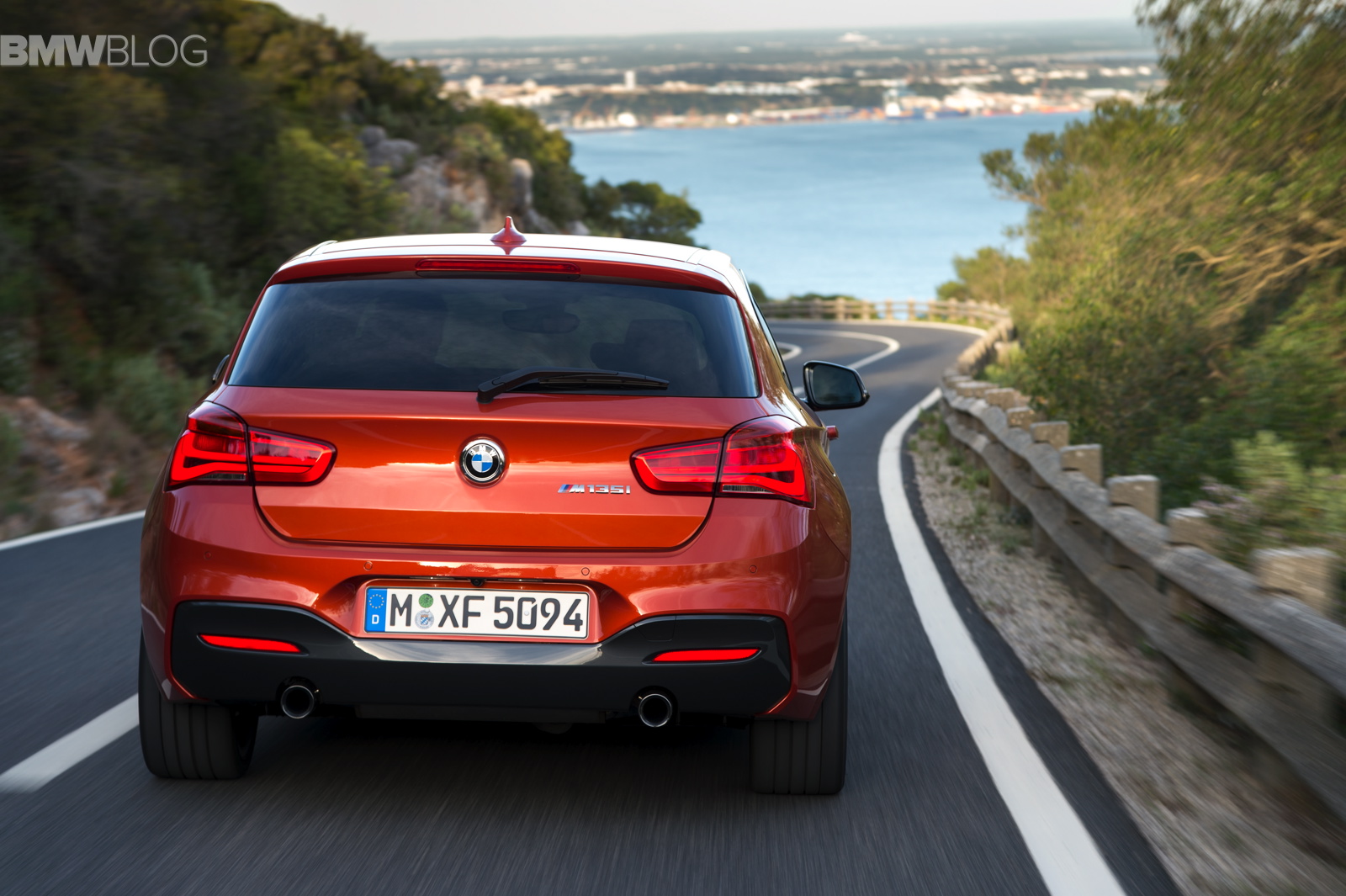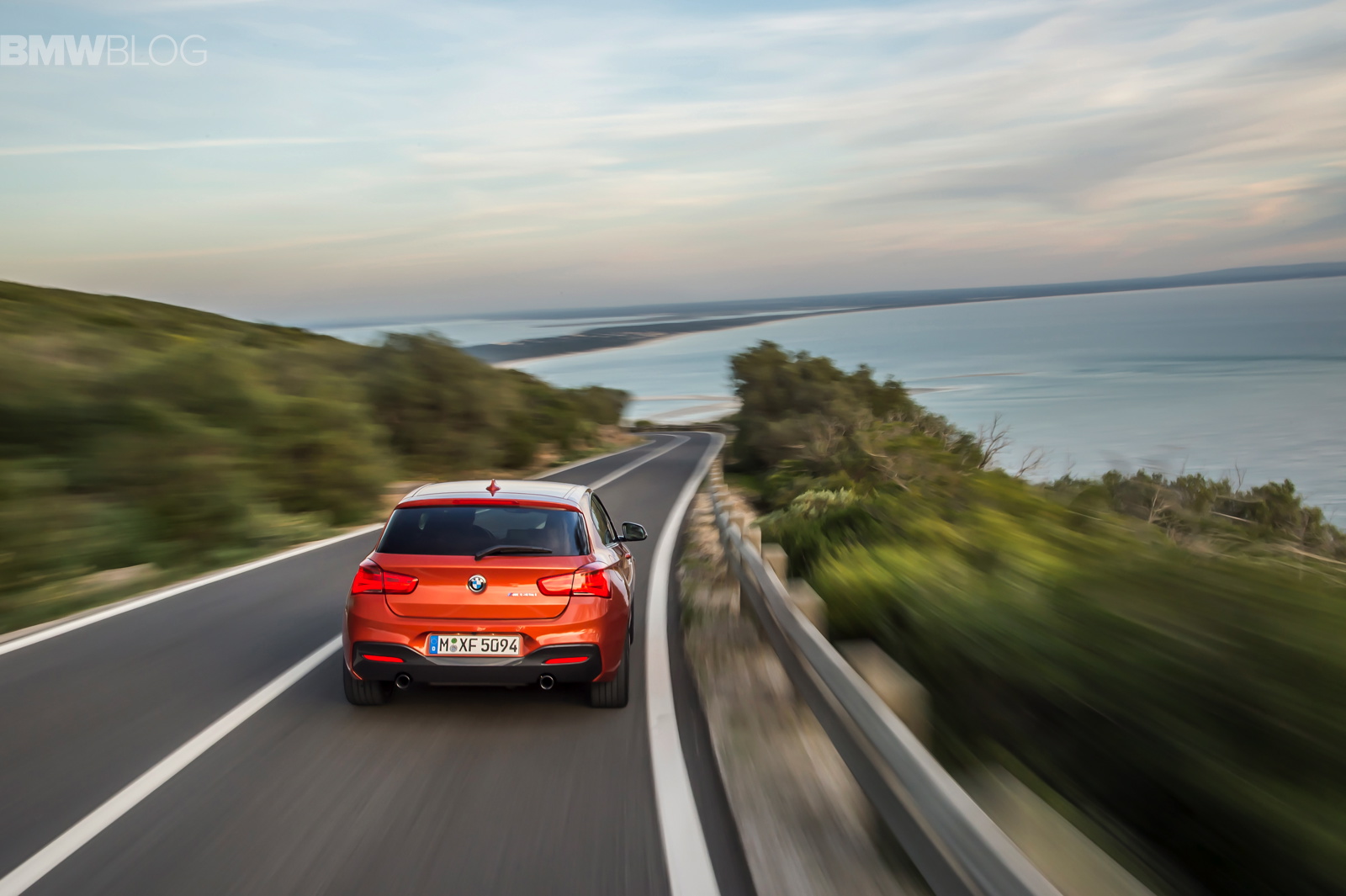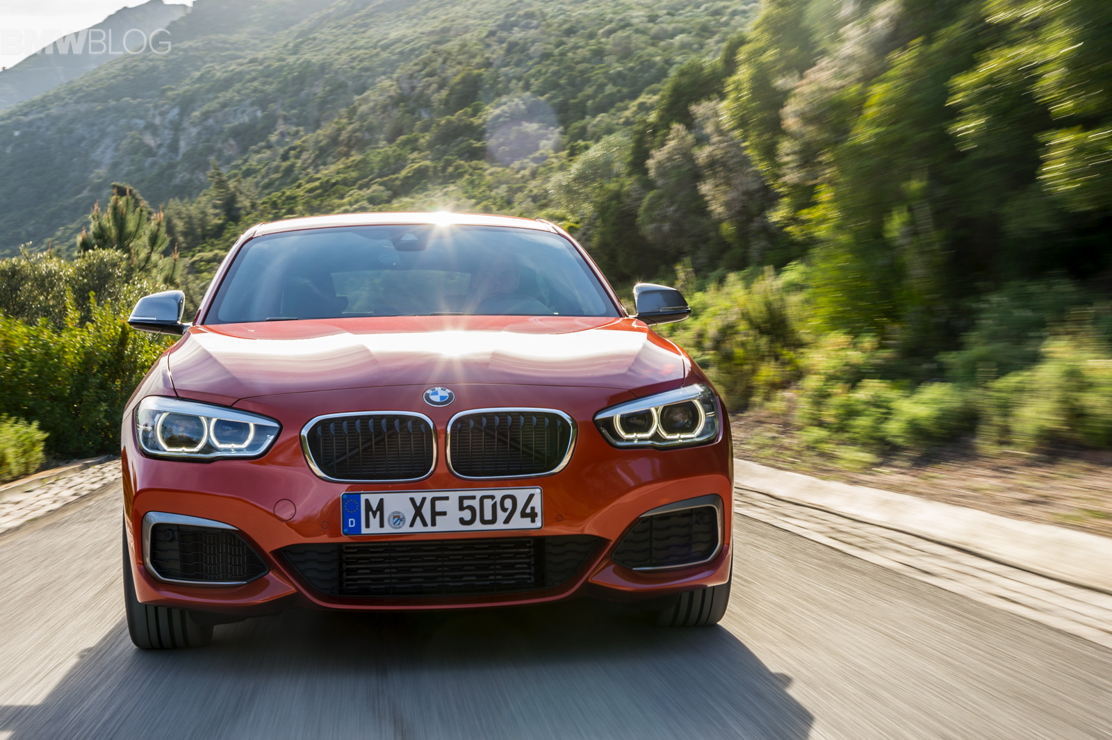 Painted in the Valencia Orange color, the BMW M135i comes with a special M aerodynamic package, which can be identified by features including extremely large outer air intakes in the front apron. These occupy the space normally reserved for foglamps on all other new BMW 1 Series models. A new chrome trim is now part of the air intake giving the car a more rough and sporty look.