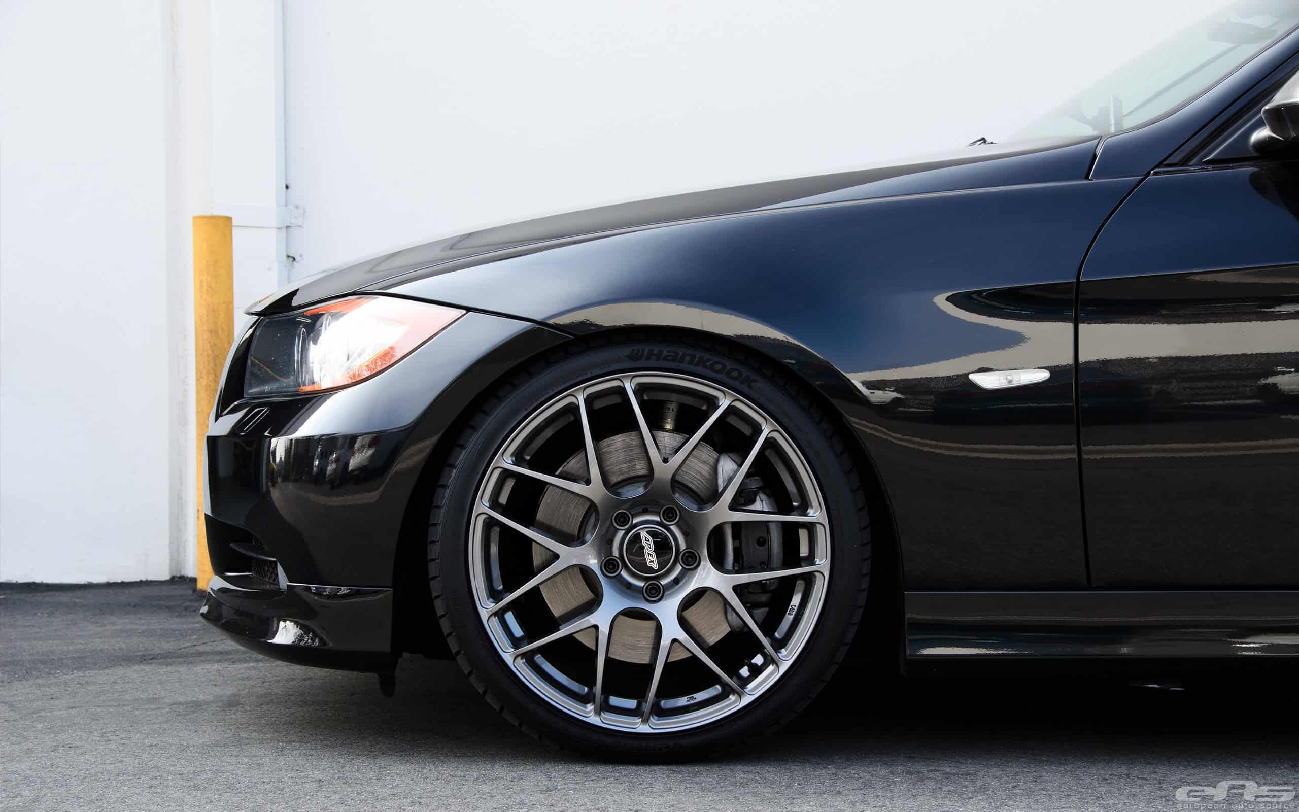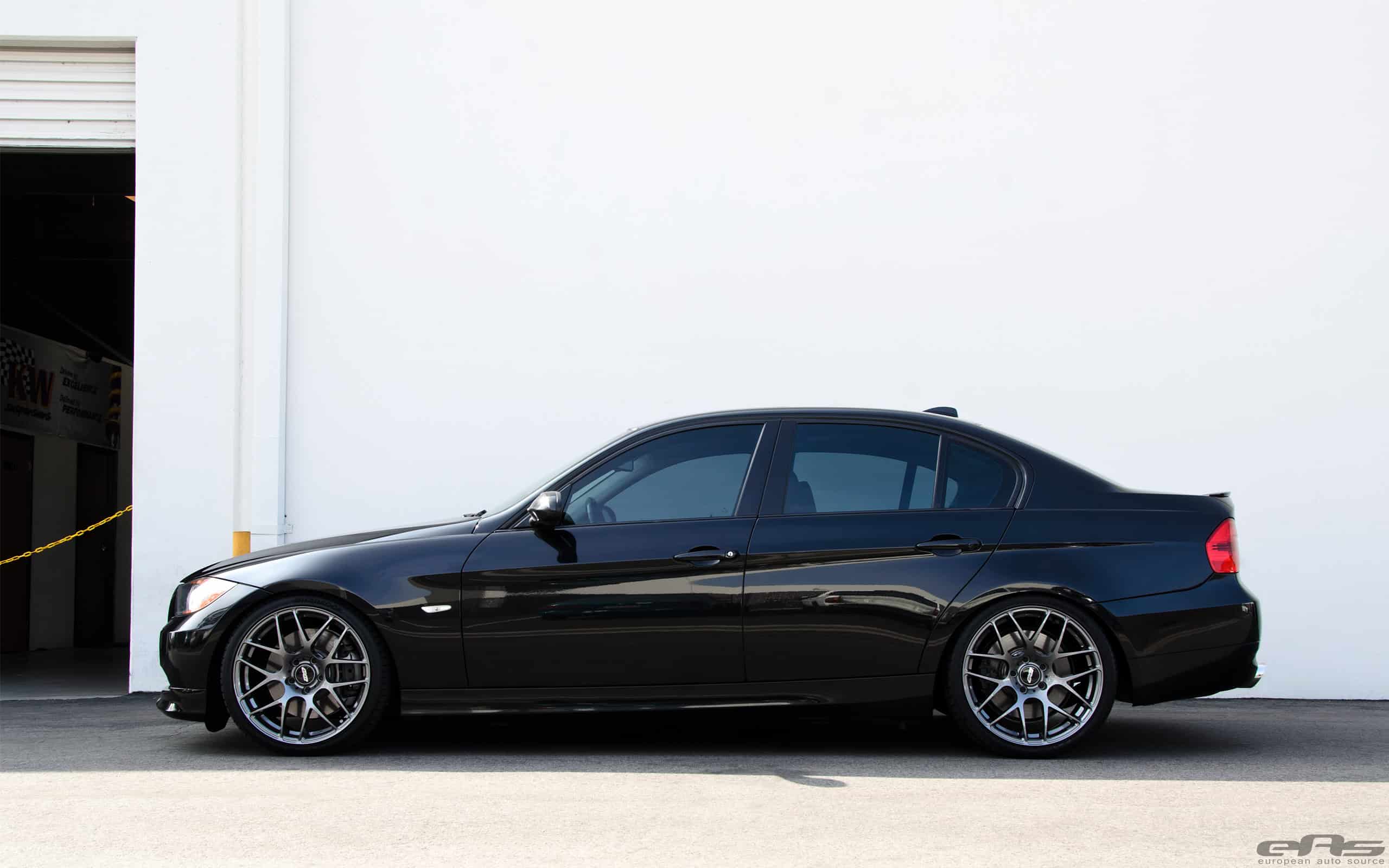 But as any 10+ year old car, the E90 3 Series is starting to show its age; nothing a few aftermarket tuning additions won’t solve. European Auto Source handled this Jet Black BMW E90 335i project by first installing a new set of aftermarket wheels.