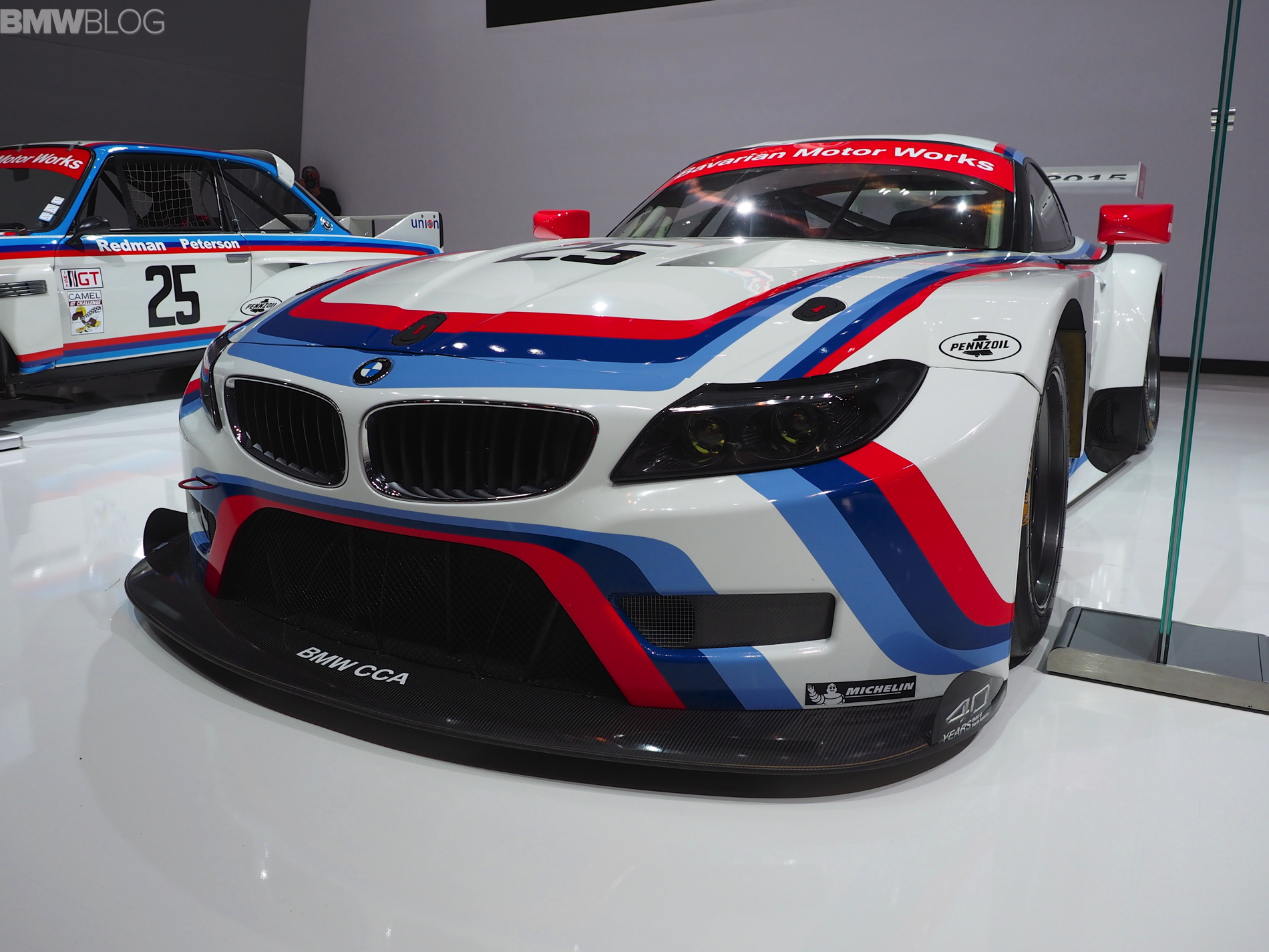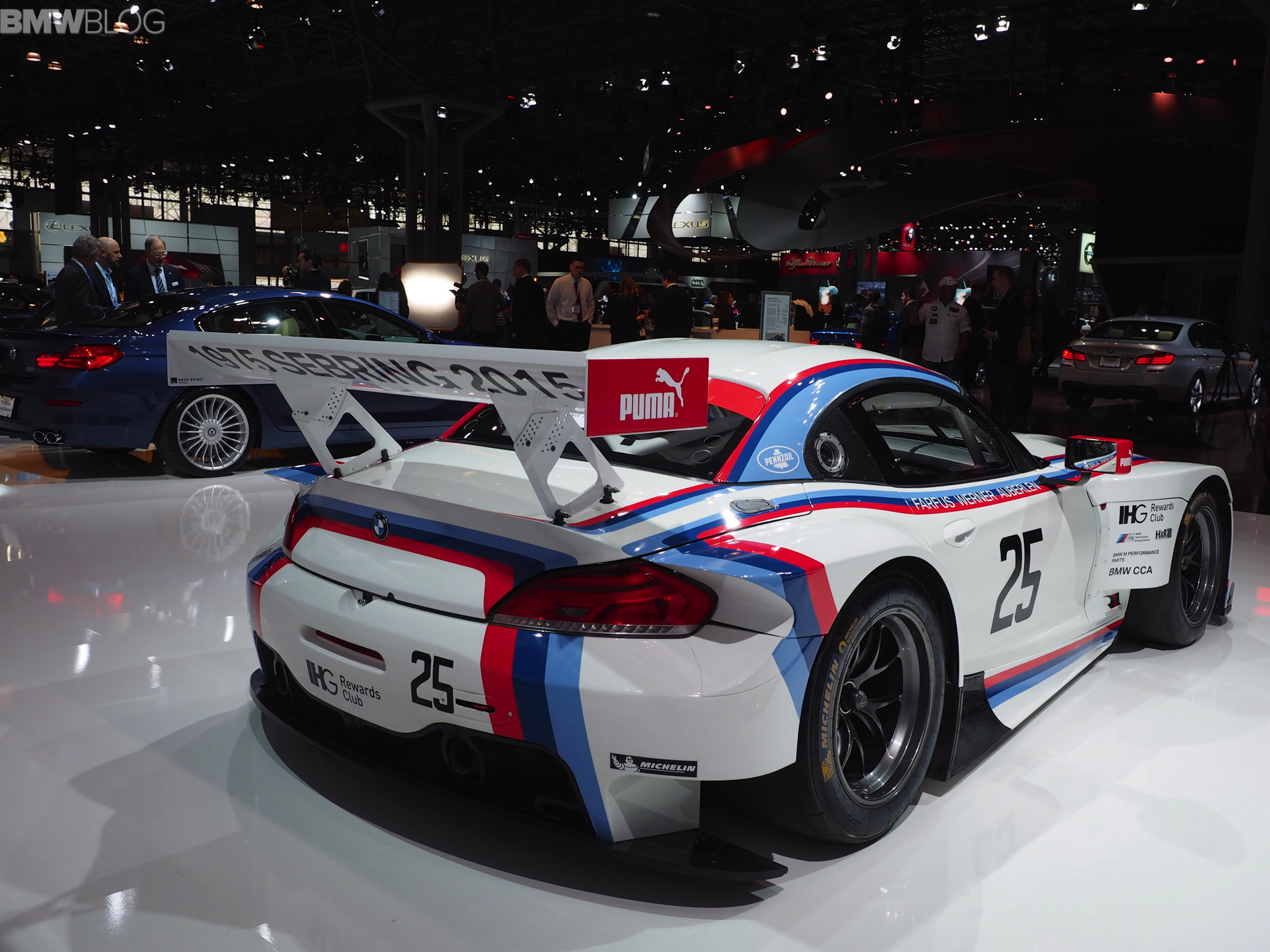 Taking front stage at the 2015 New York Auto Show is the new BMW Z4 GTLM “Sebring 75″ Edition. The race car pays homage to the IMSA 3.0 CSL that won the 12 Hours of Sebring in 1975 in the hands of Brian Redman, Sam Posey and Hans Stuck.
