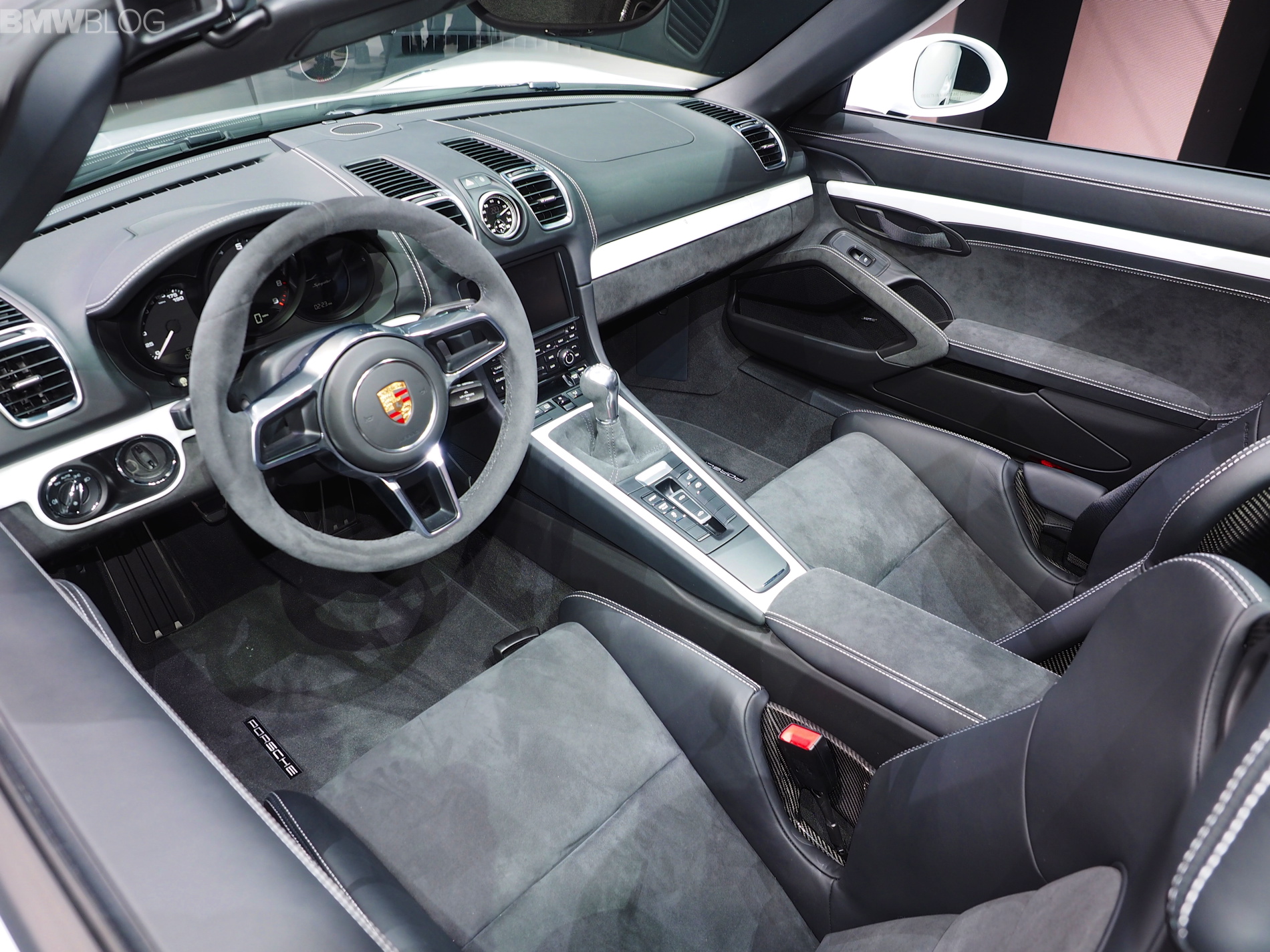 Porsche’s also stripped out the interior by replacing the leather seats with faux-suade ones, replacing the door pull with cloth straps and even reducing the diameter of the steering wheel. Porsche’s also removed the air conditioning and radio to reduce weight, though both are no-cost optional extras. Extreme stuff.
