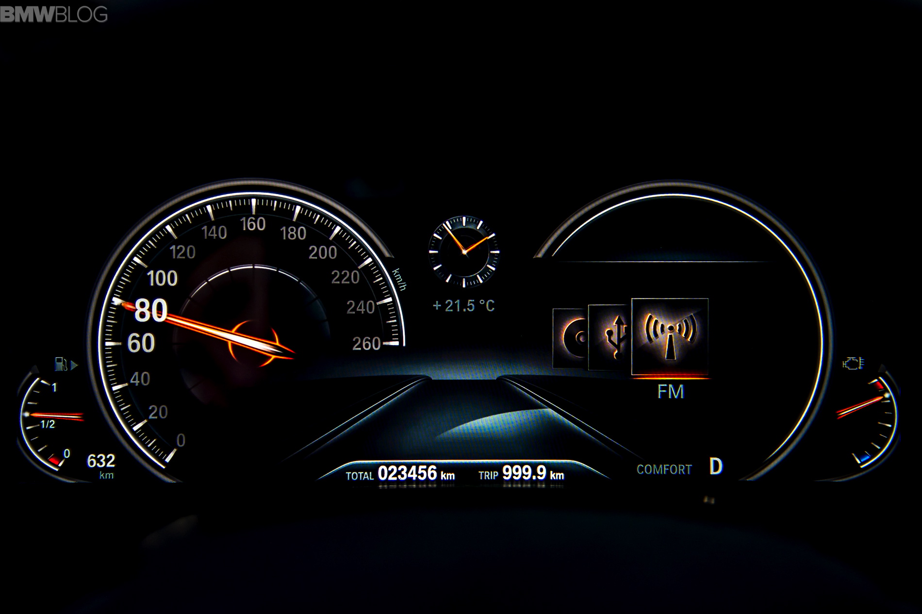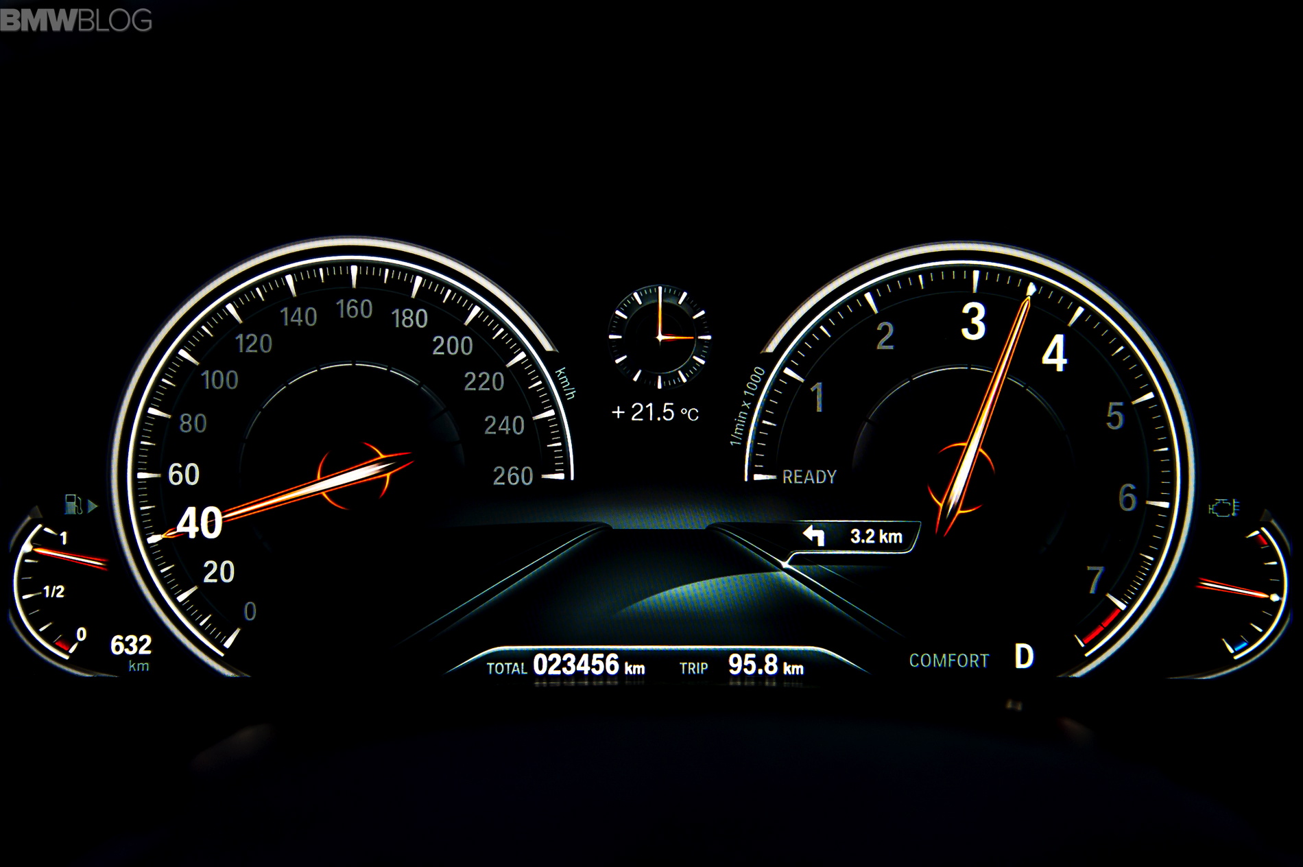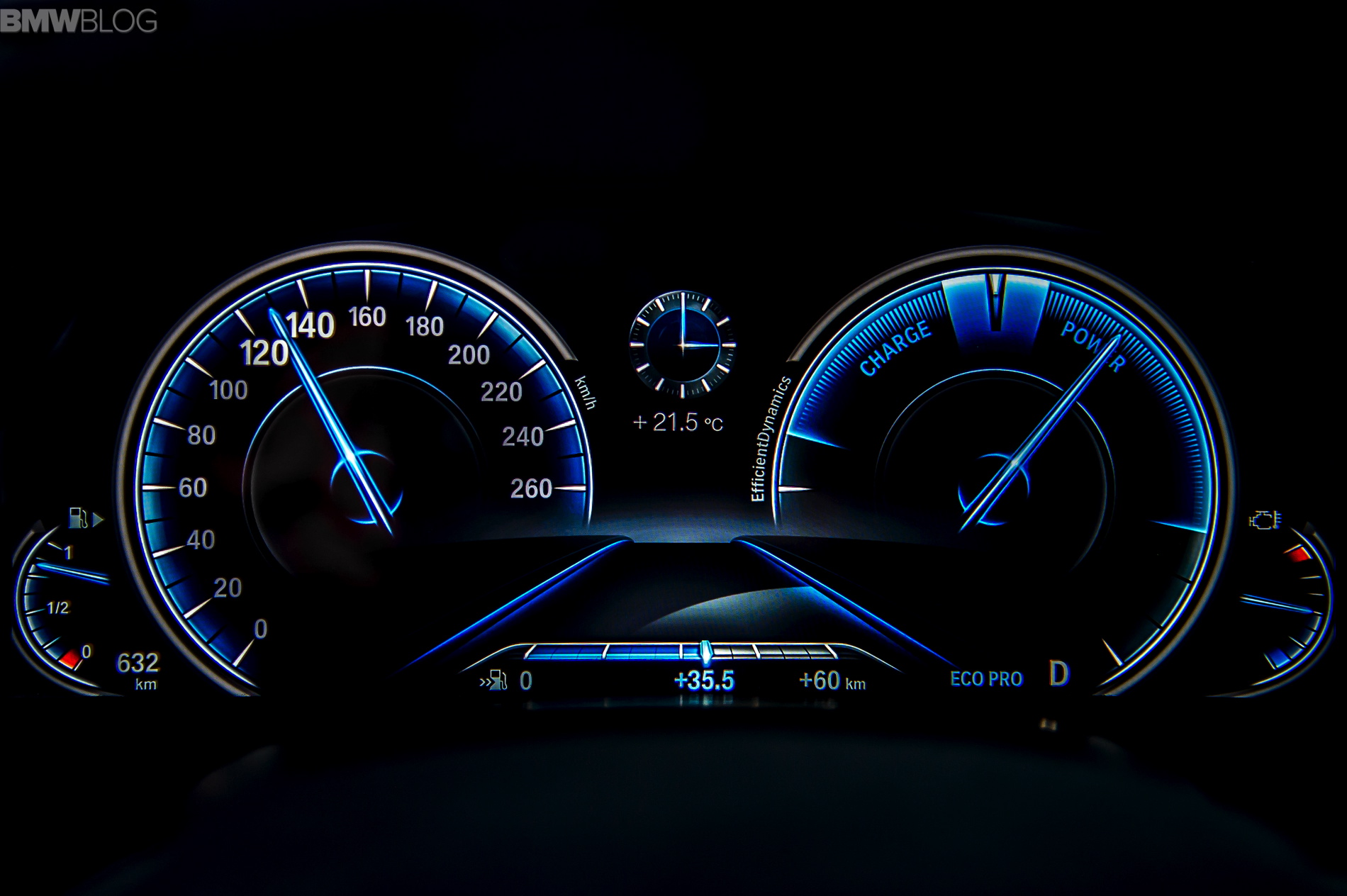 On one of the lap sections we turned on the Active Cruise Control with Stop & Go function when following a car at moderate speed as if driving on a heavily packed motorway giving the 7 Series a first scent of autonomously driven car. Moreover, since the test unit features cross-traffic warning system (in the front), steering and directional control assistant with Traffic Jam Assistant and the Lane Departure Warning Assistant with active side collision Protection (which rely on the data collected by the stereo camera and radar sensors at the front and sides of the car to detect road boundaries, vehicles traveling ahead and those approaching from the side or rear) it was possible to significantly increase speed (it is available up to 210 km/h or 130 mph).