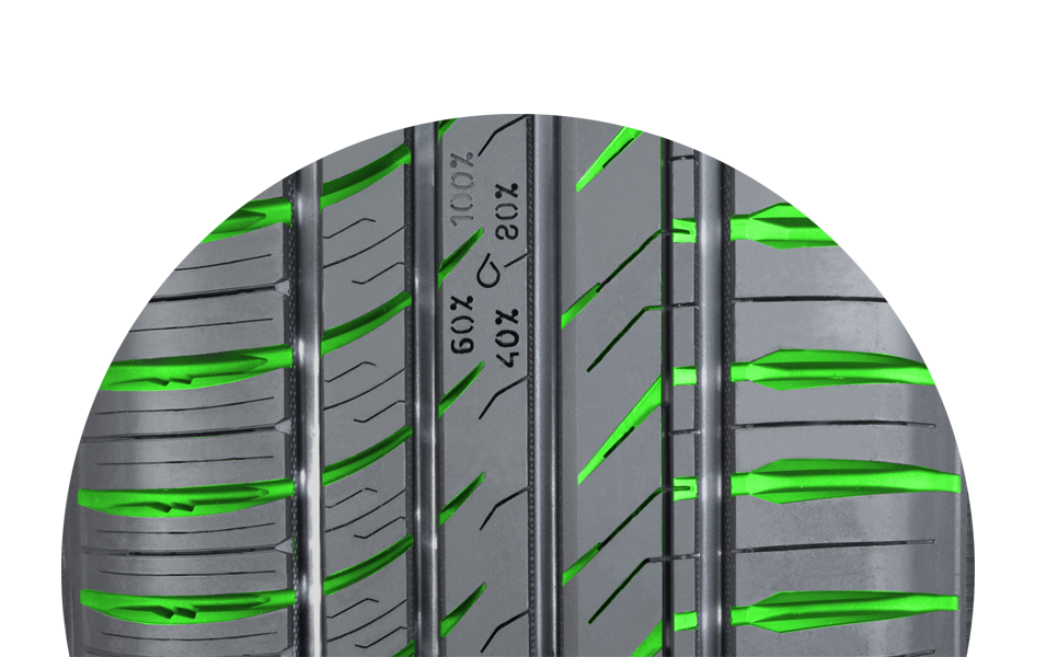 Although the new Nokian eNTYRE 2.0 contains 14% fewer sipes that its predecessor, giving it ultra-high performance-like handling on dry roads, new innovation have improved its aquaplaning and slushplaning properties. The design of the new Lateral Grooves allows them to store more water from between the tire and the road and accelerates its flow from the main grooves.