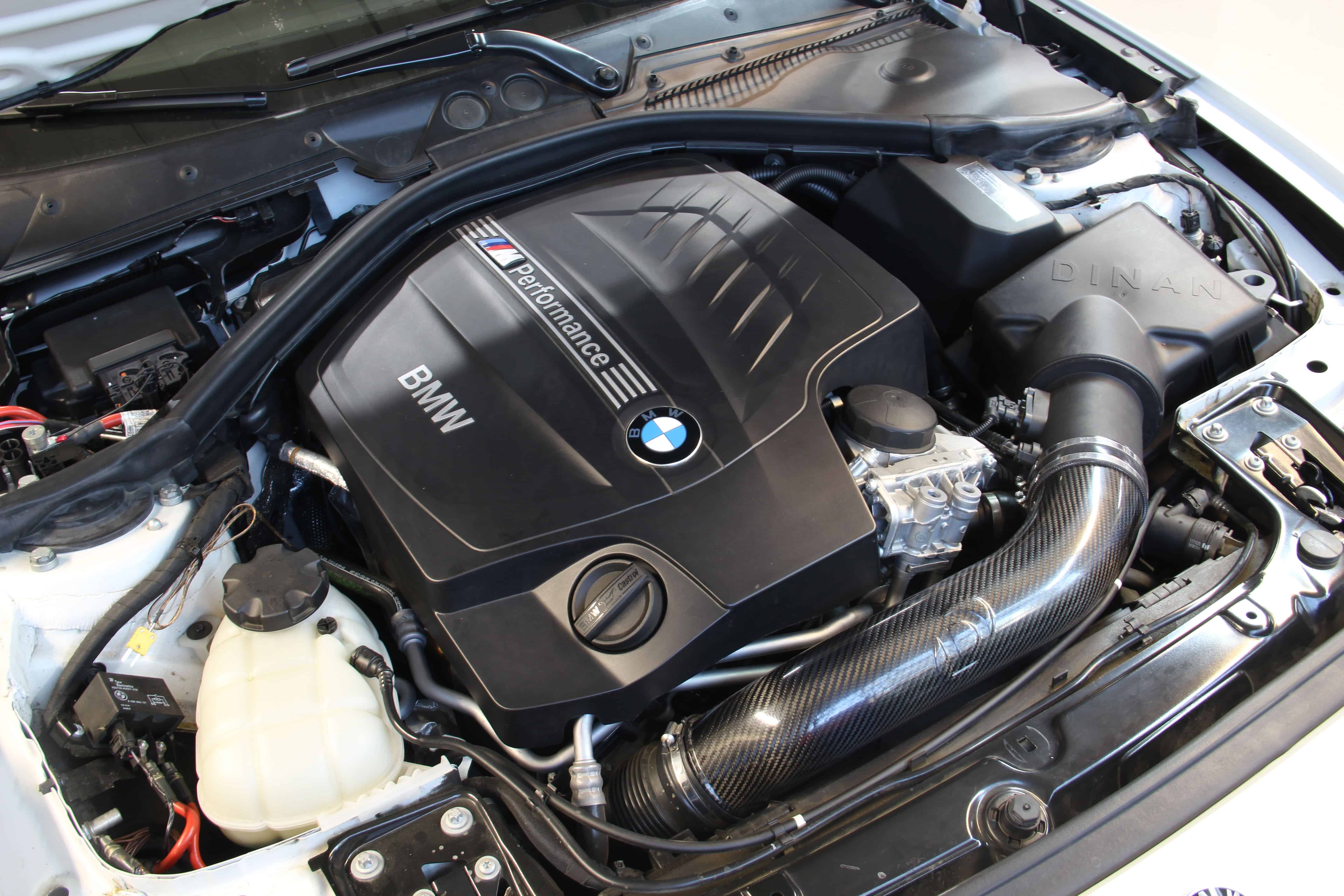 DINAN is pairing the Stage 2 tune with a new cold air intake which maximizes the efficiency of the factory design first by utilizing a sealed air box that prevents the intrusion of hot under hood air while retaining an excellent pickup location for cold air. Air is passed through a large high-flow filter, past an upgraded MAF sensor and into a carbon fiber tube that provides much less restriction than the stock piece.