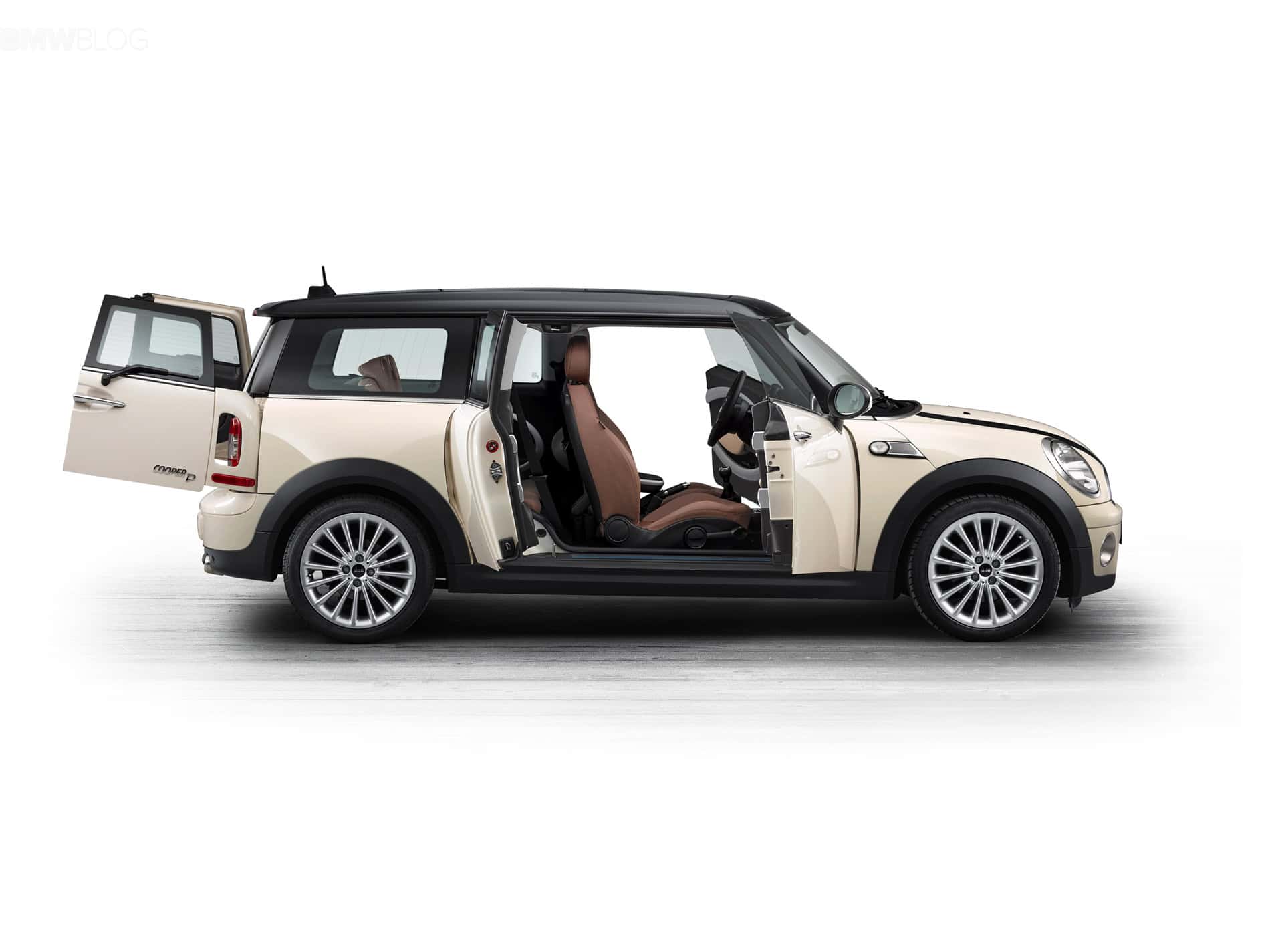 Historically, the Clubman features access to its cargo volume via bi-parting rear doors, also known as barn doors or Splitdoor and all Clubmans feature a pair of bi-parting side doors, marketed singlarly as the Clubdoor, which are always located on its right side of the bod.