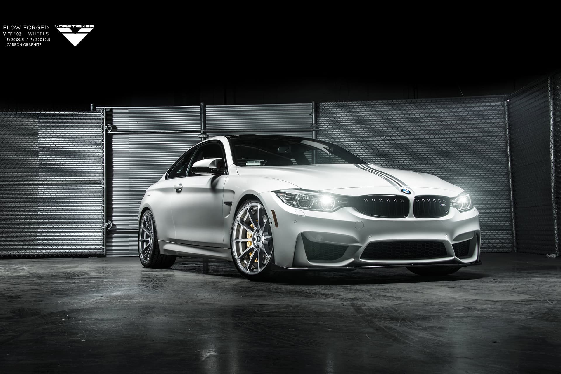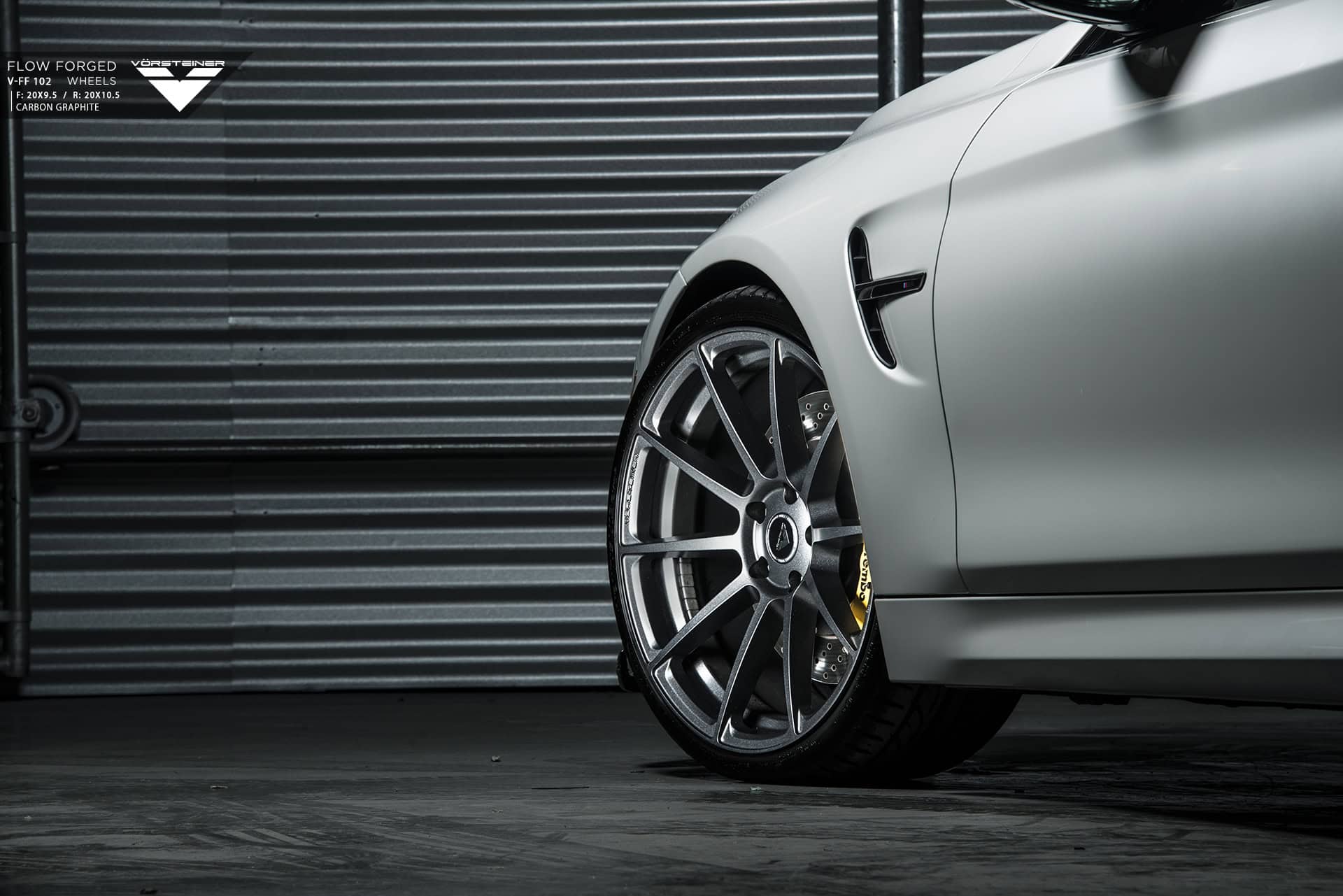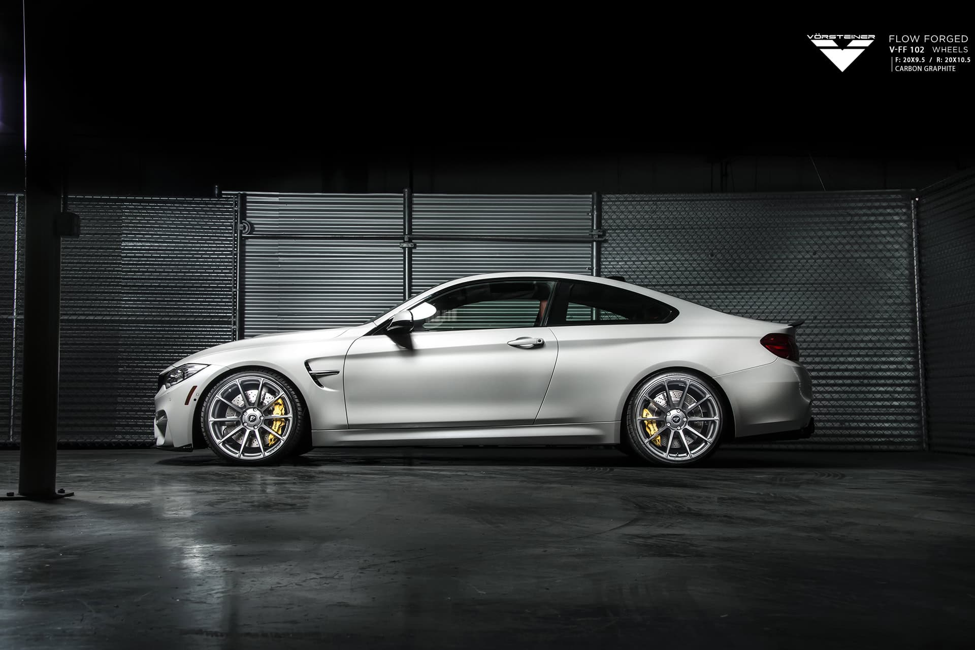 This BMW M4 comes with a set of Vorsteiner Flow Forged V-FF 102 wheels in Carbon Graphite, sized 20×9.5 and 20×10.5 in the front and rear, respectively. The wheels showcase a multispoke design which provide a flush fitment with the fenders and match the car’s overall exterior sportiness.